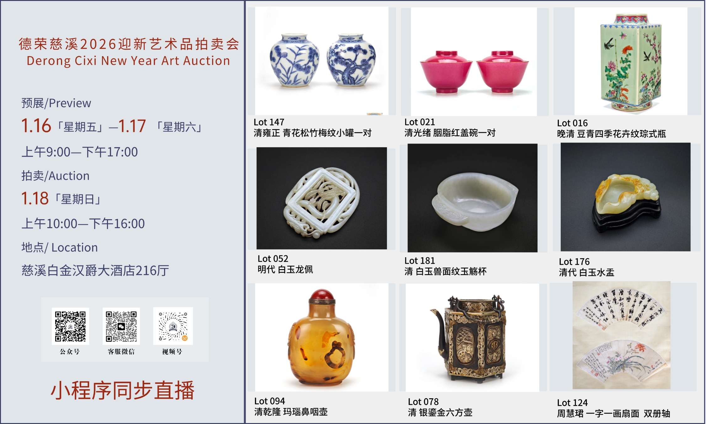 浙江德荣拍卖有限公司 德荣慈溪2026迎新艺术品拍卖会