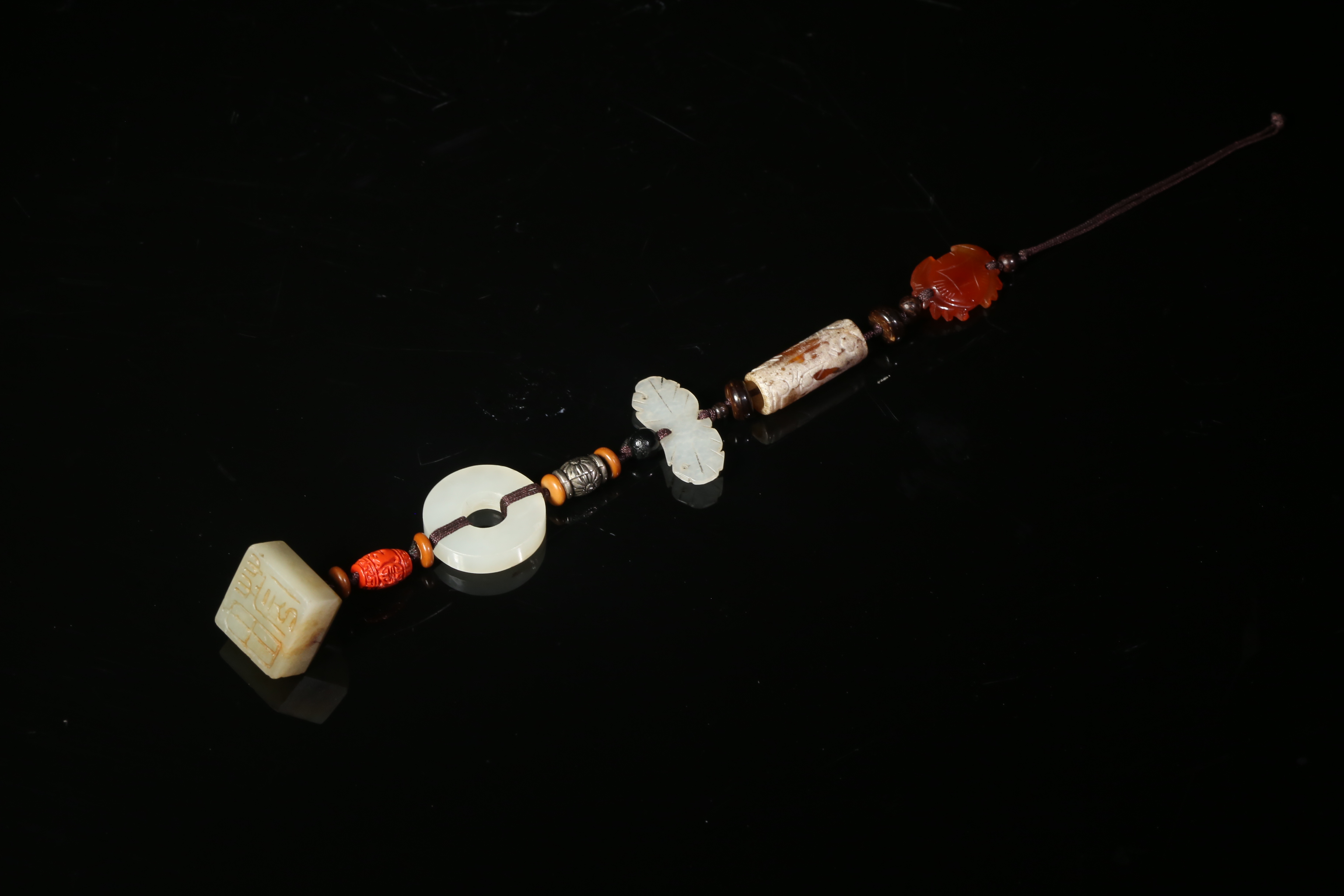 3217 白玉环、玉钮印、玛瑙勒子多宝串