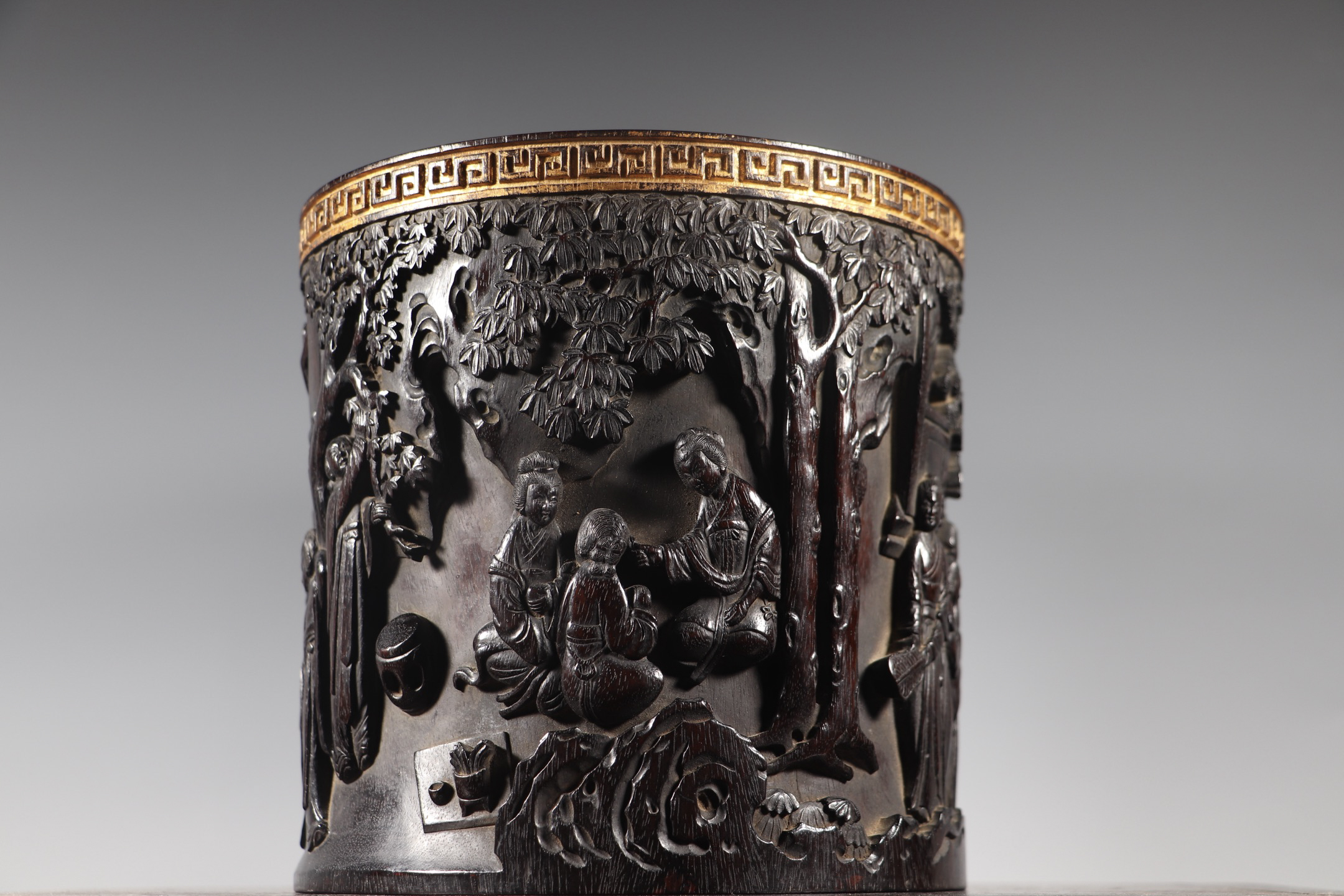1001 紫檀木十二金钗人物诗文鎏金笔筒