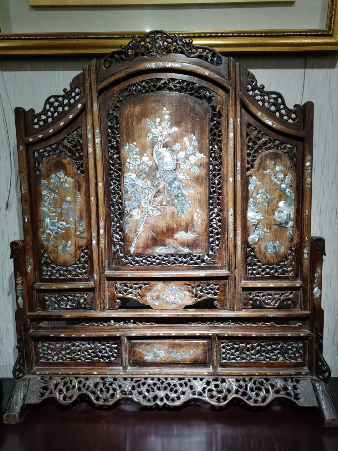 1012 红木嵌螺钿屏风