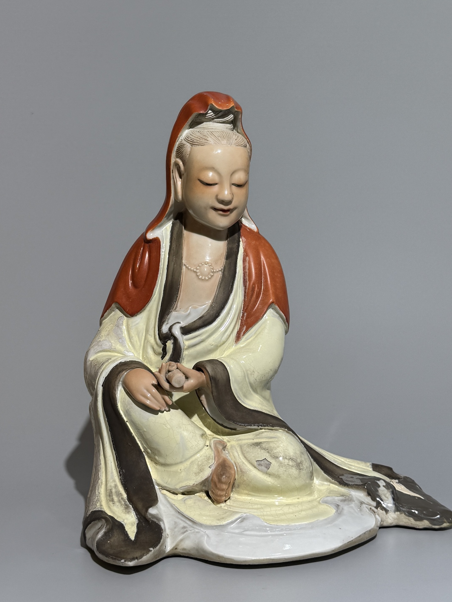 1008 粉彩自在观音坐像