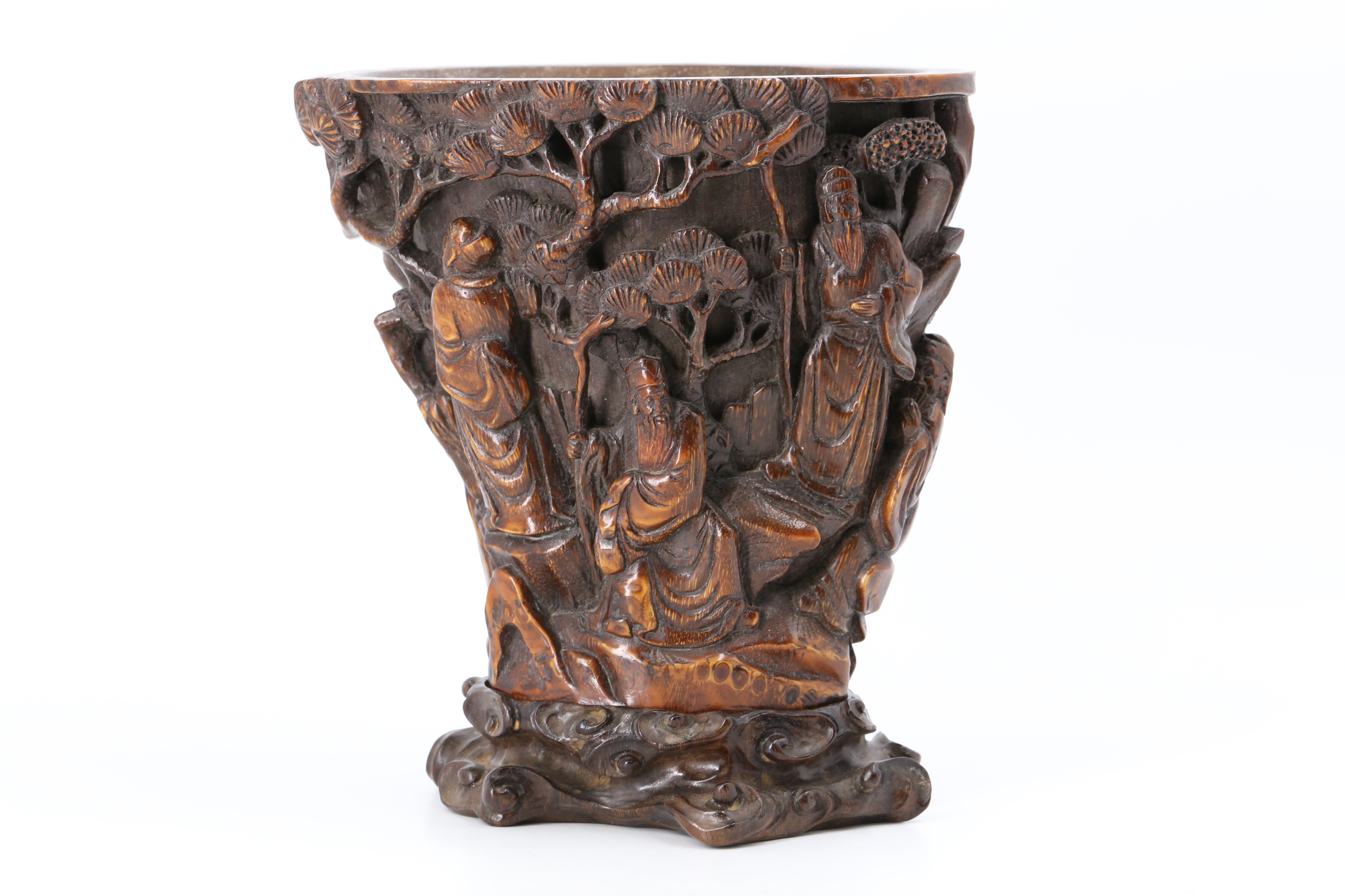 1011 竹刻松下五老角形杯