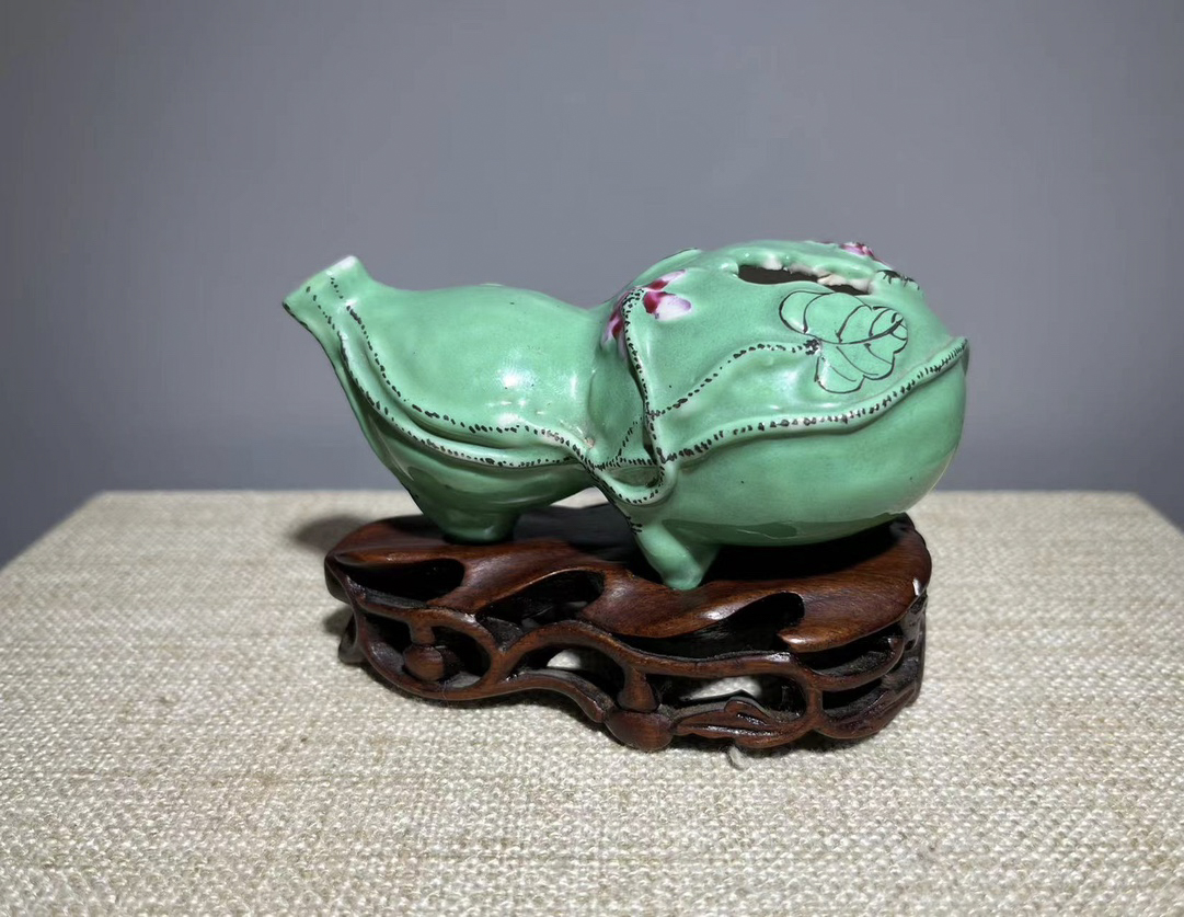 1019 松石绿地堆塑花卉葫芦形水滴