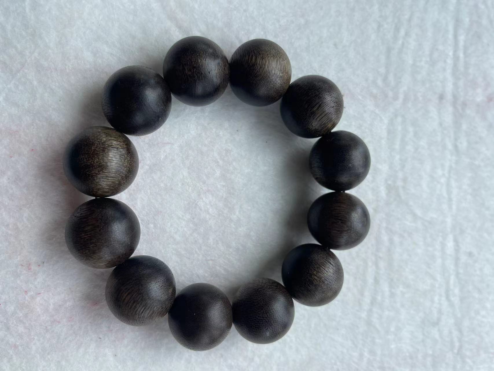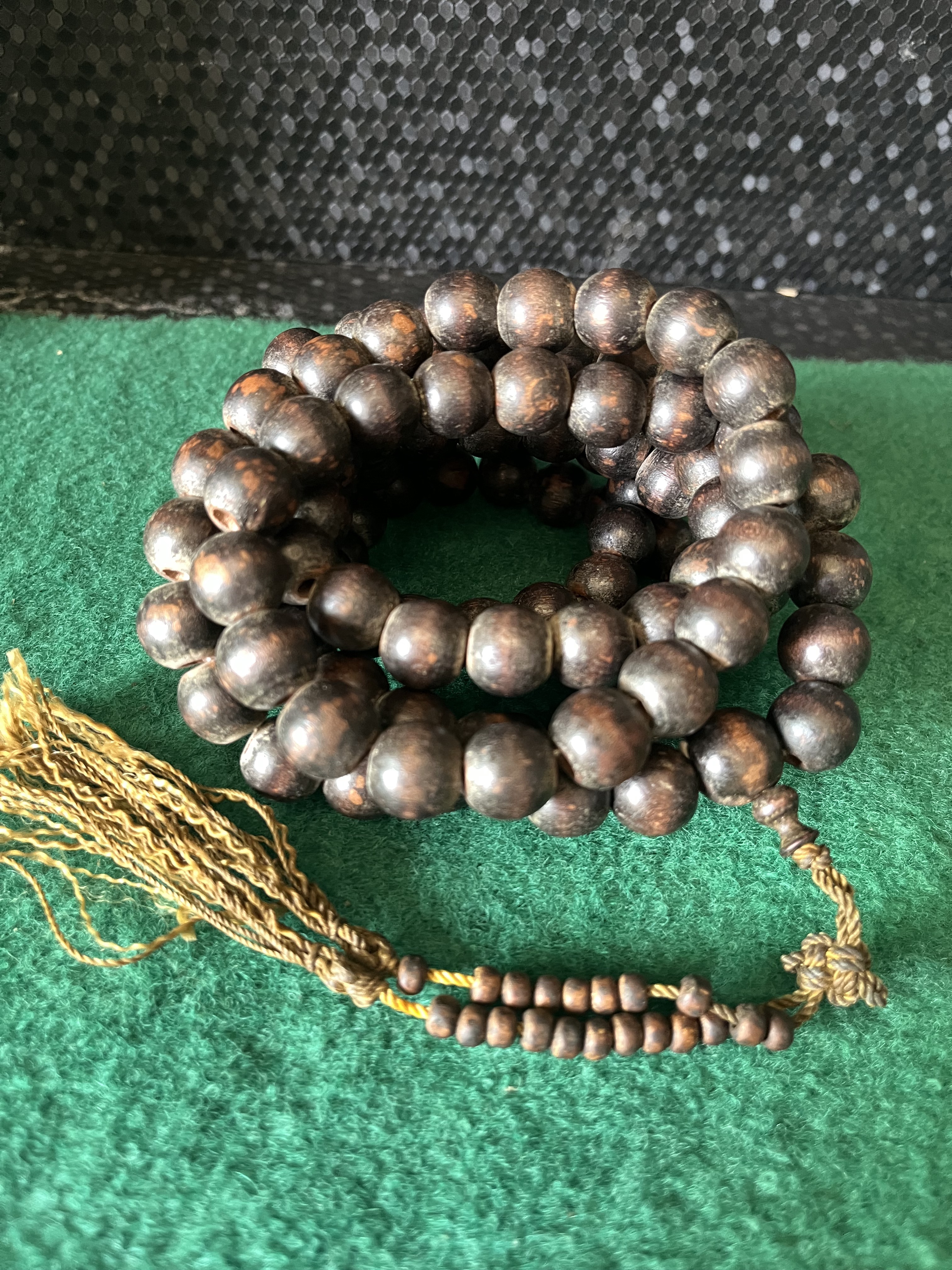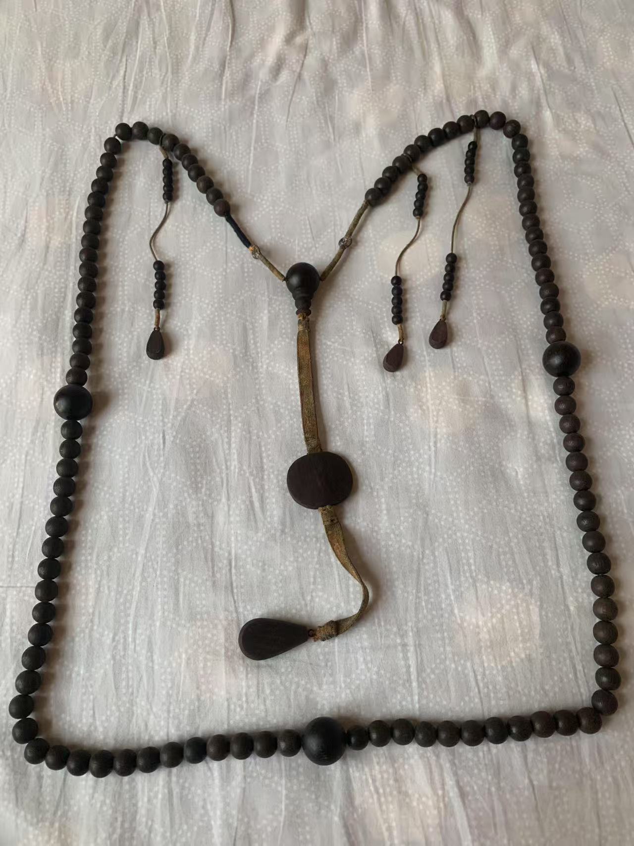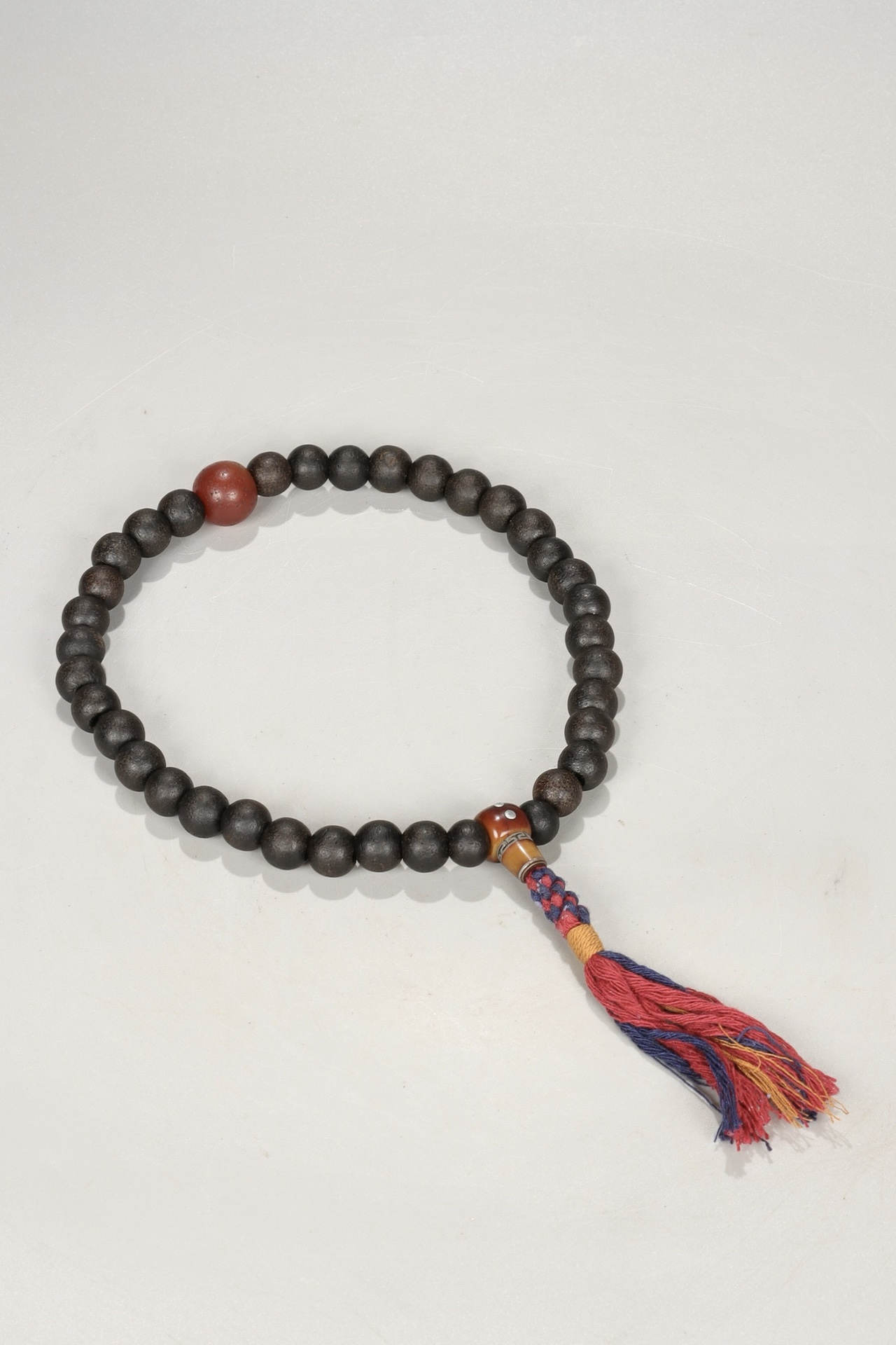 1135 沉香嵌银鎏金团寿纹十八子手持