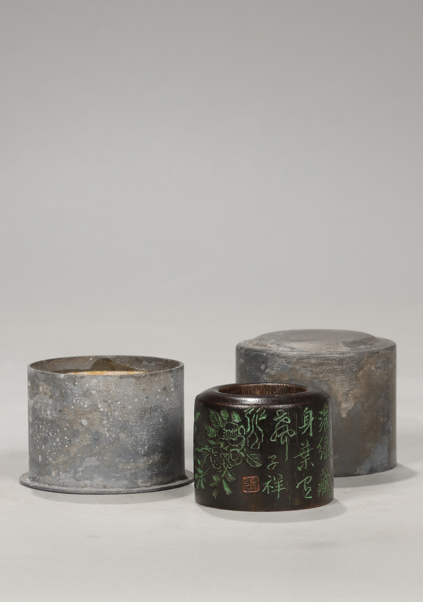 1137 张熊款奇楠沉香子祥款花鸟诗文扳指
