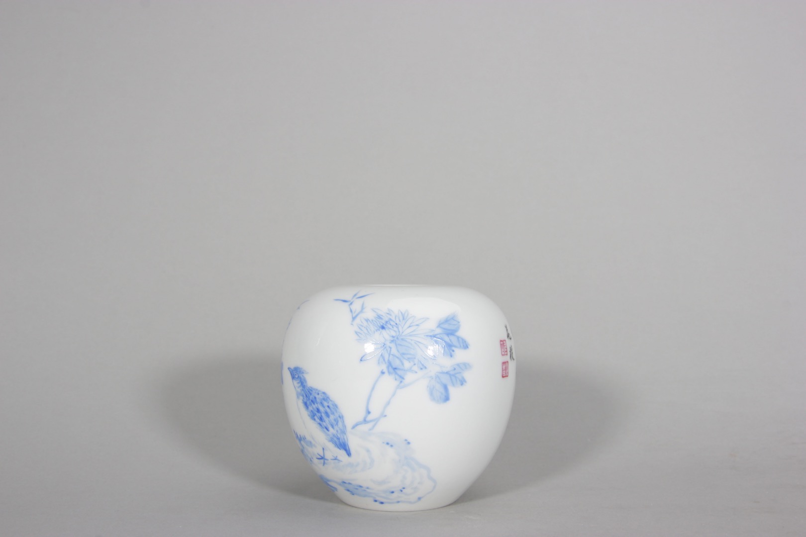 1227 蓝料彩花鸟诗文水盂