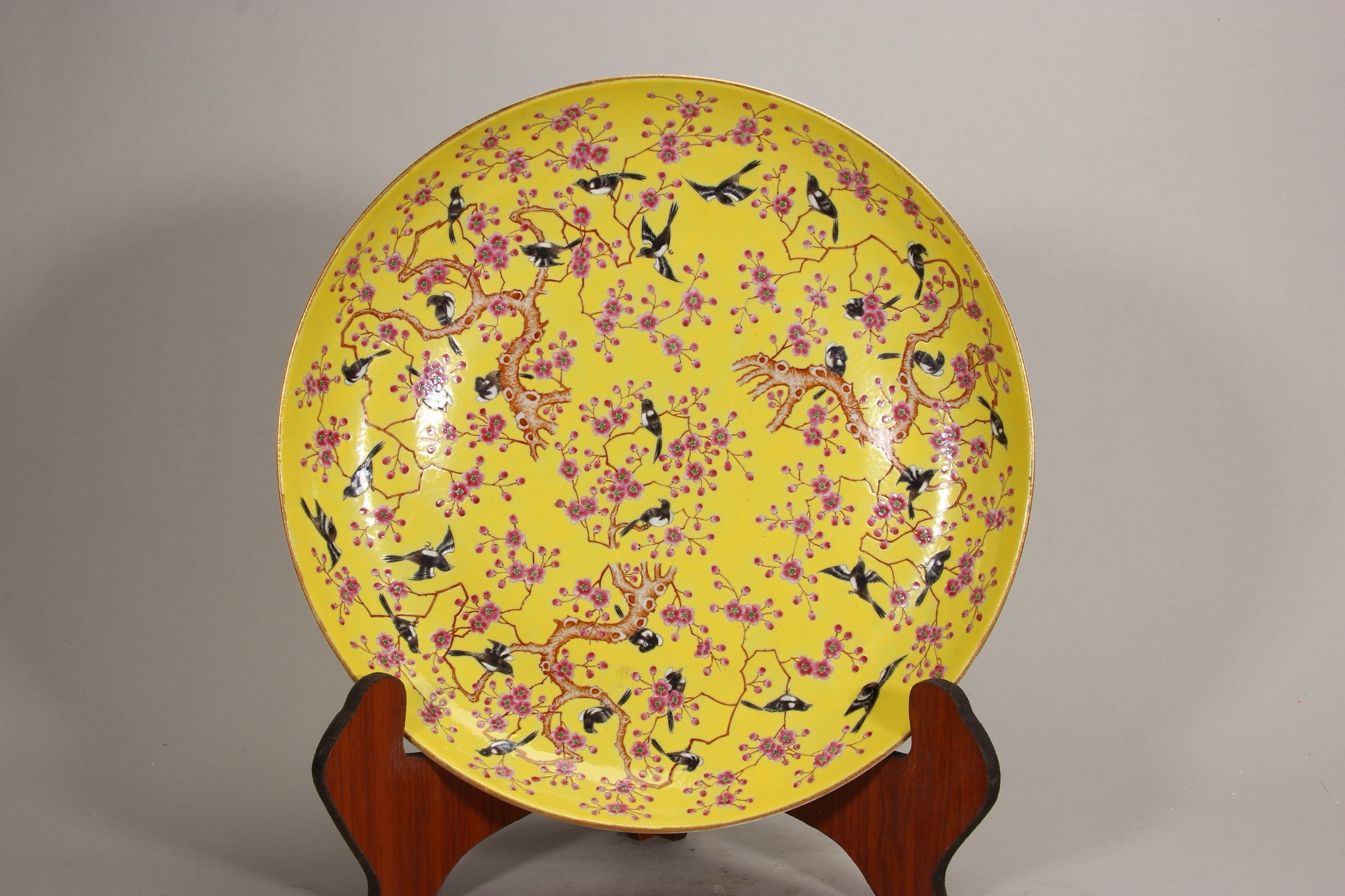1228 黄地粉彩喜上眉梢大盘