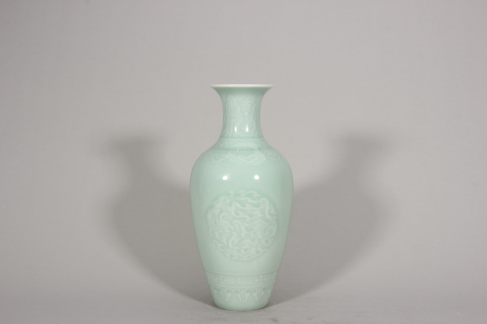 1233 豆青釉团凤纹瓶