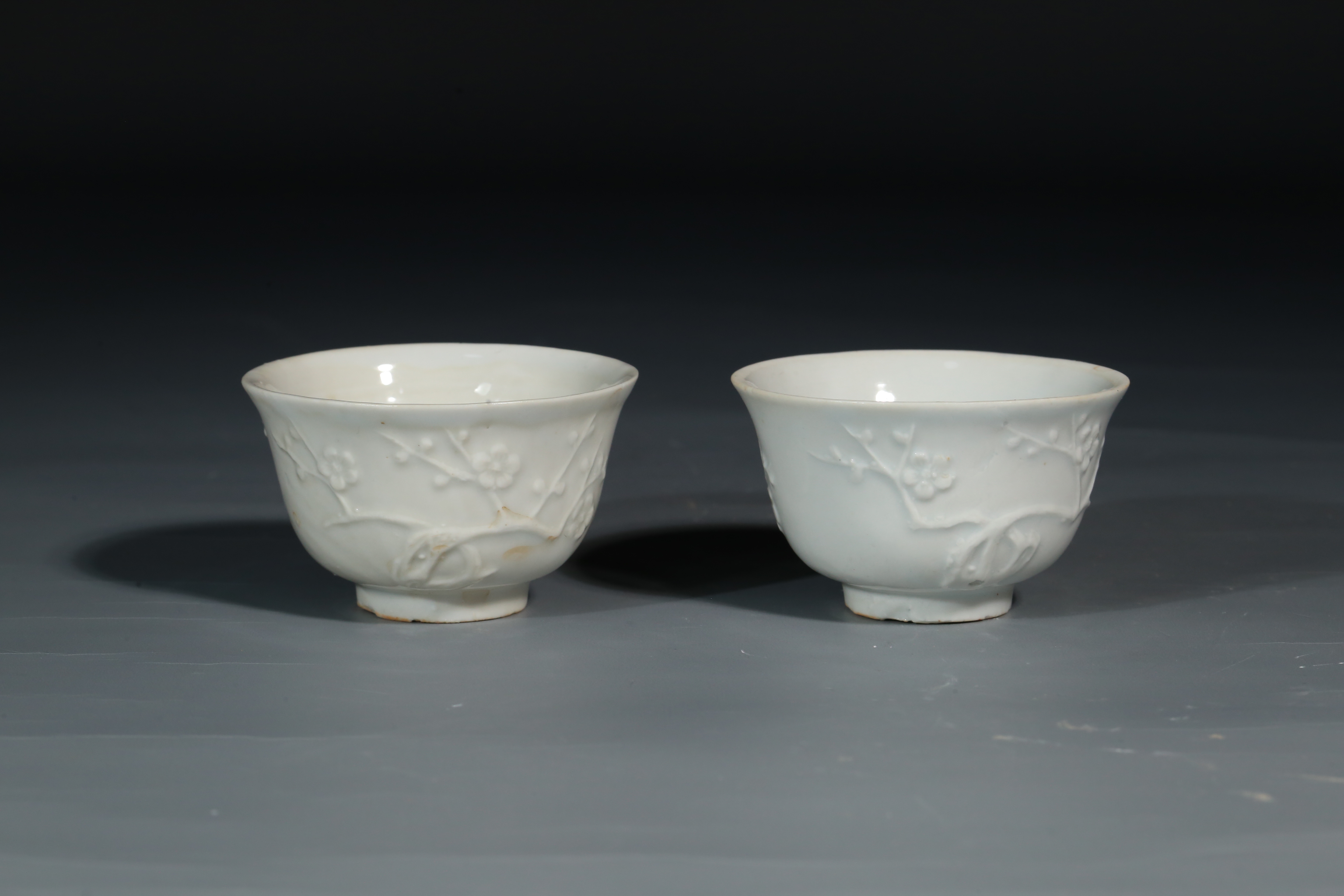 4003 德化白釉贴塑梅花杯一对
