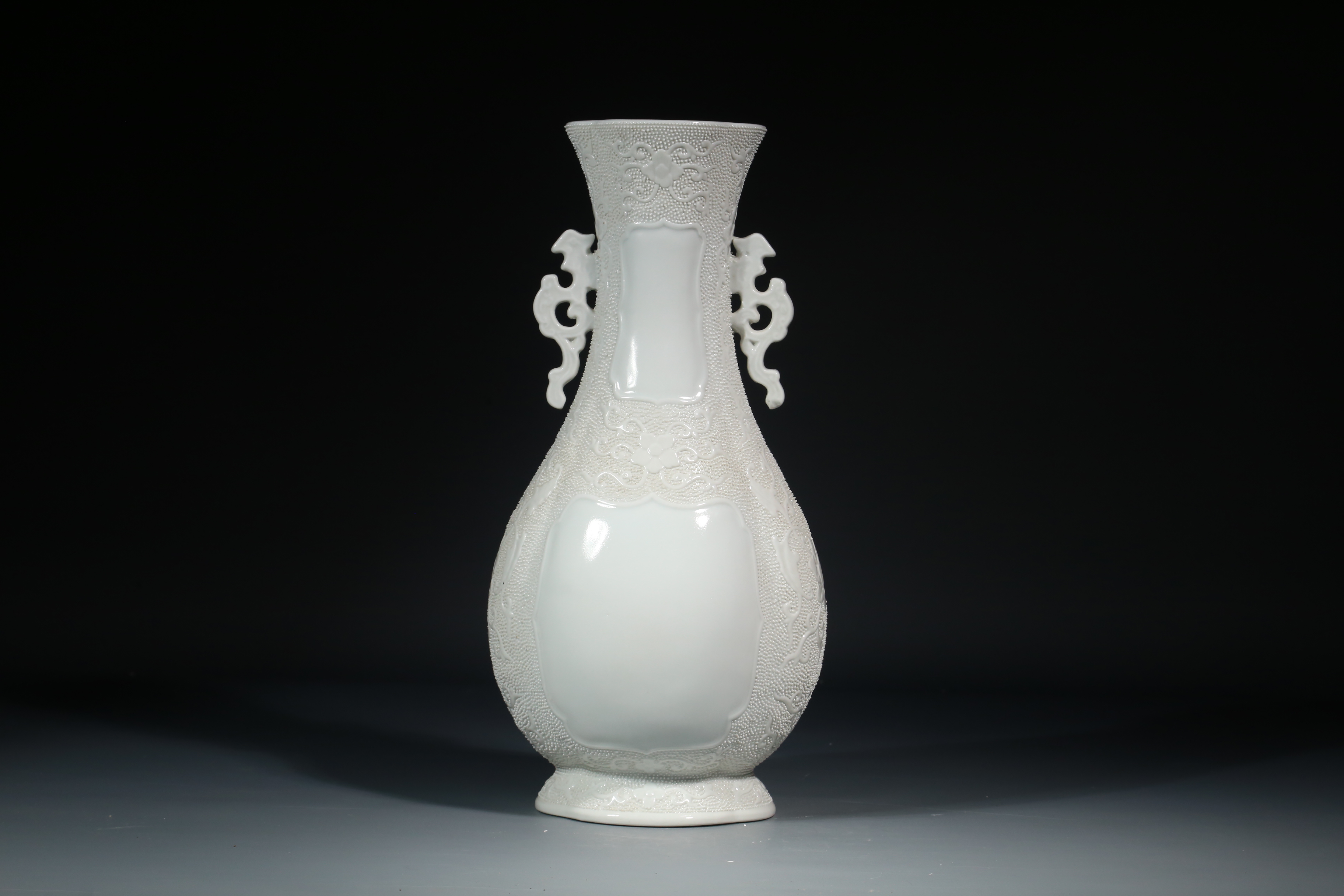 4005 白釉珍珠地花卉双耳瓶