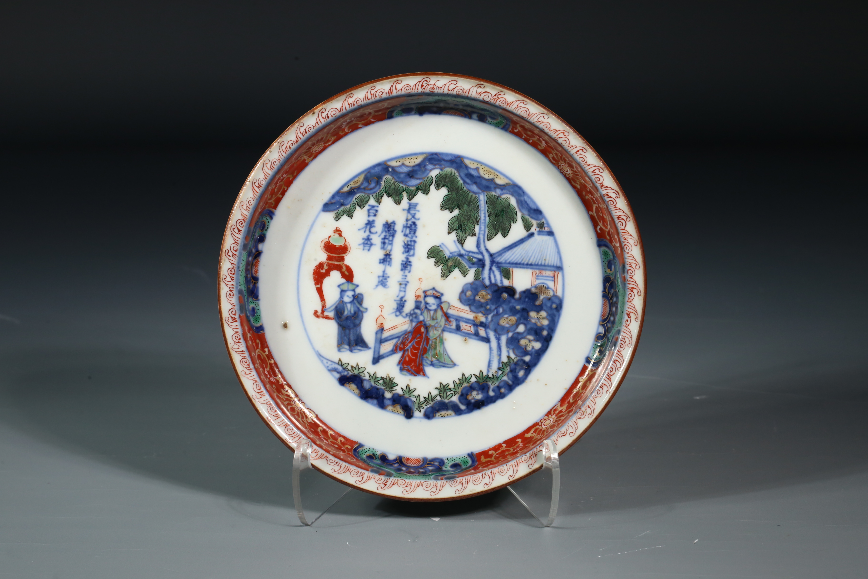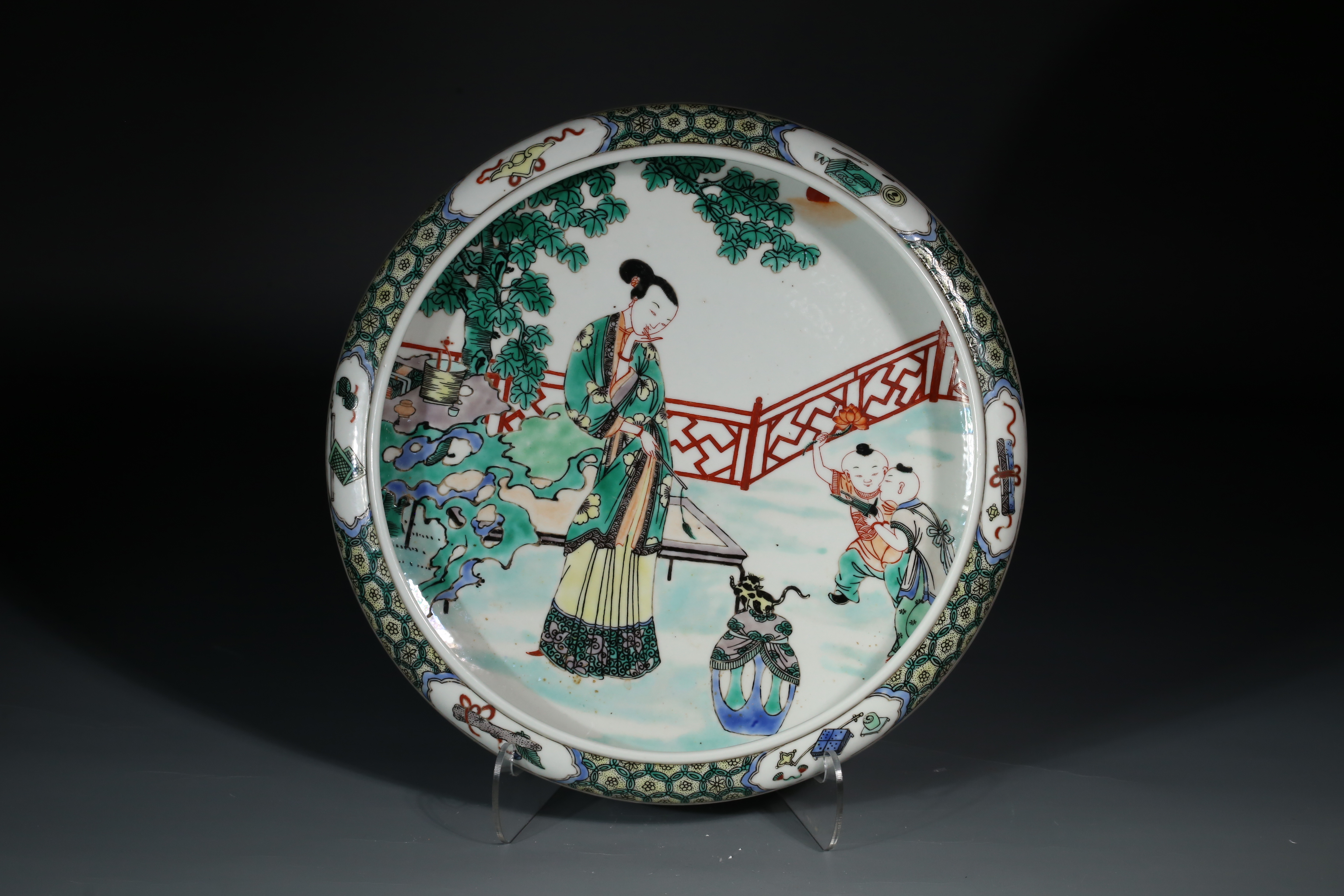 4002 紫金釉开窗粉彩人物故事什锦盘