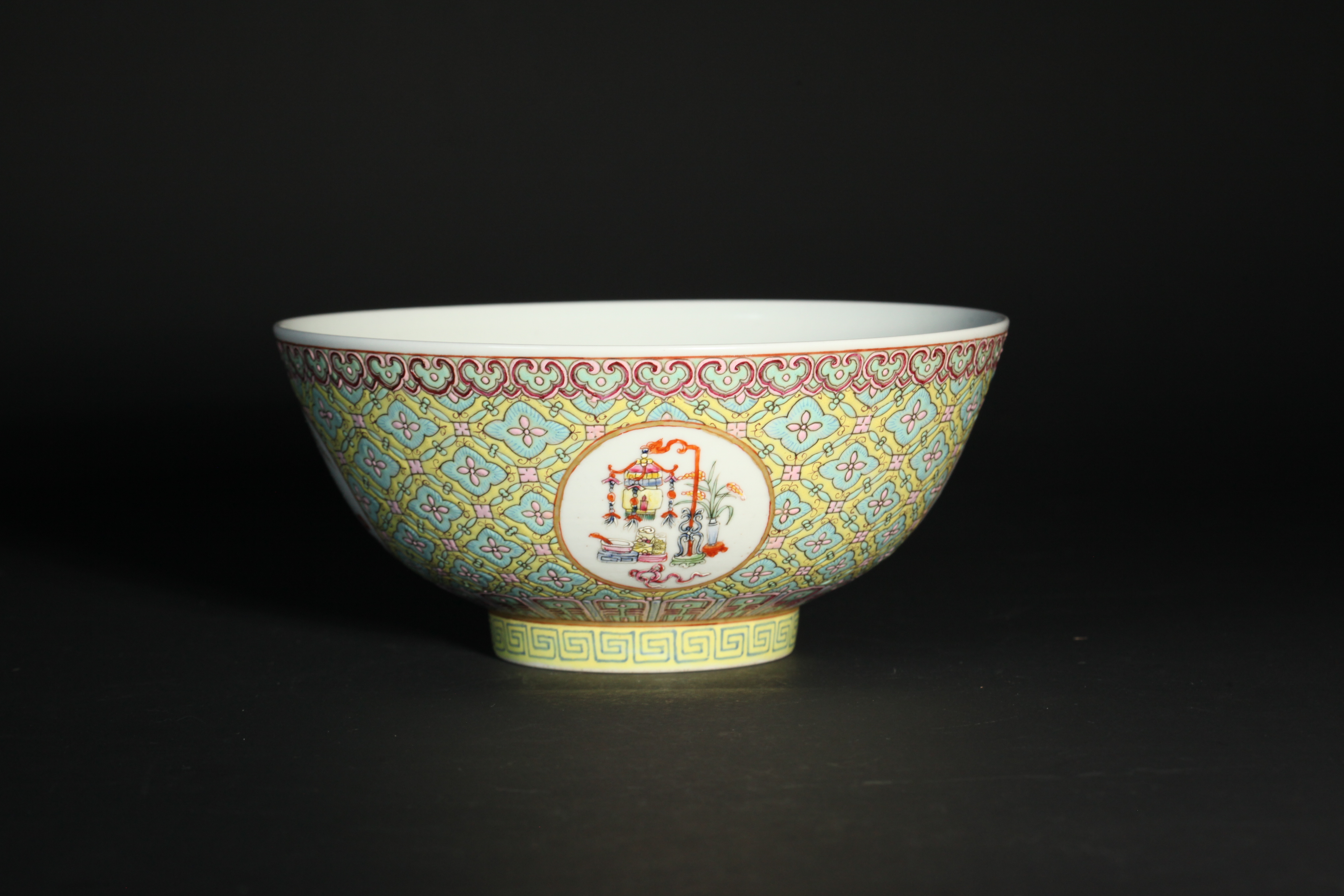 4019 粉彩锦地博古纹碗