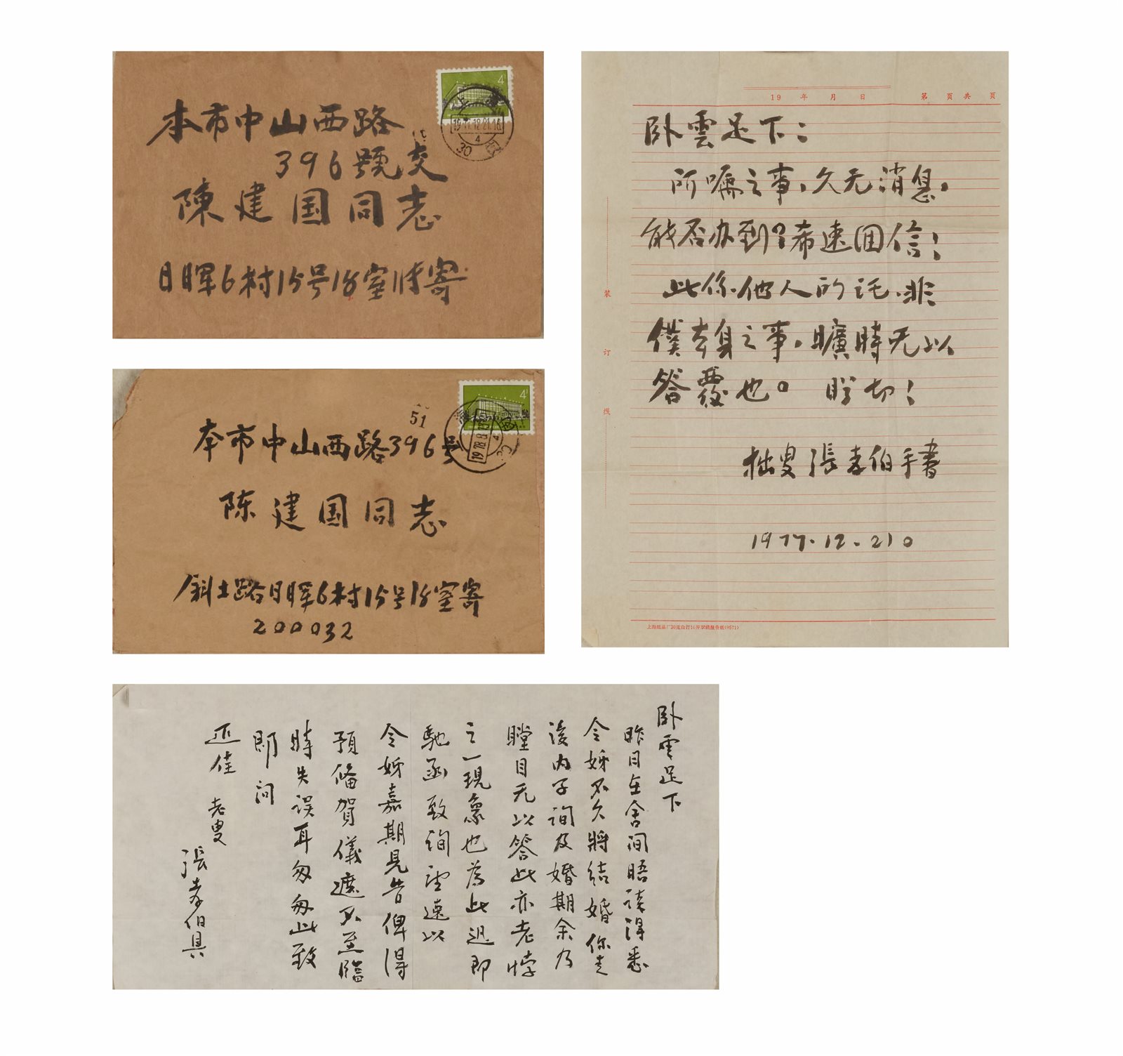 310 赵冷月、车鹏飞、陈初电致陈卧云信札 四通四页带封