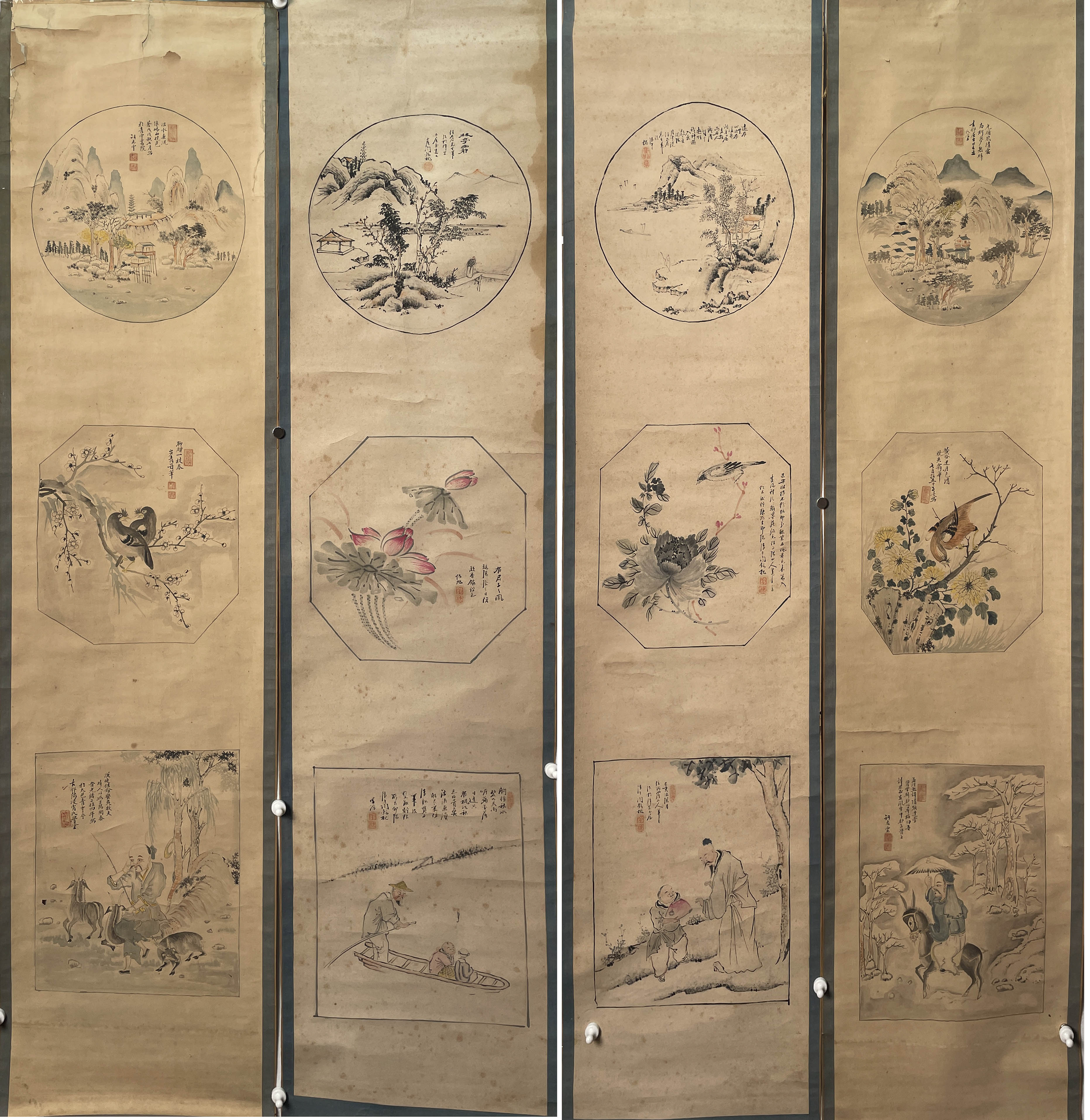 2291 山水花鸟人物四屏