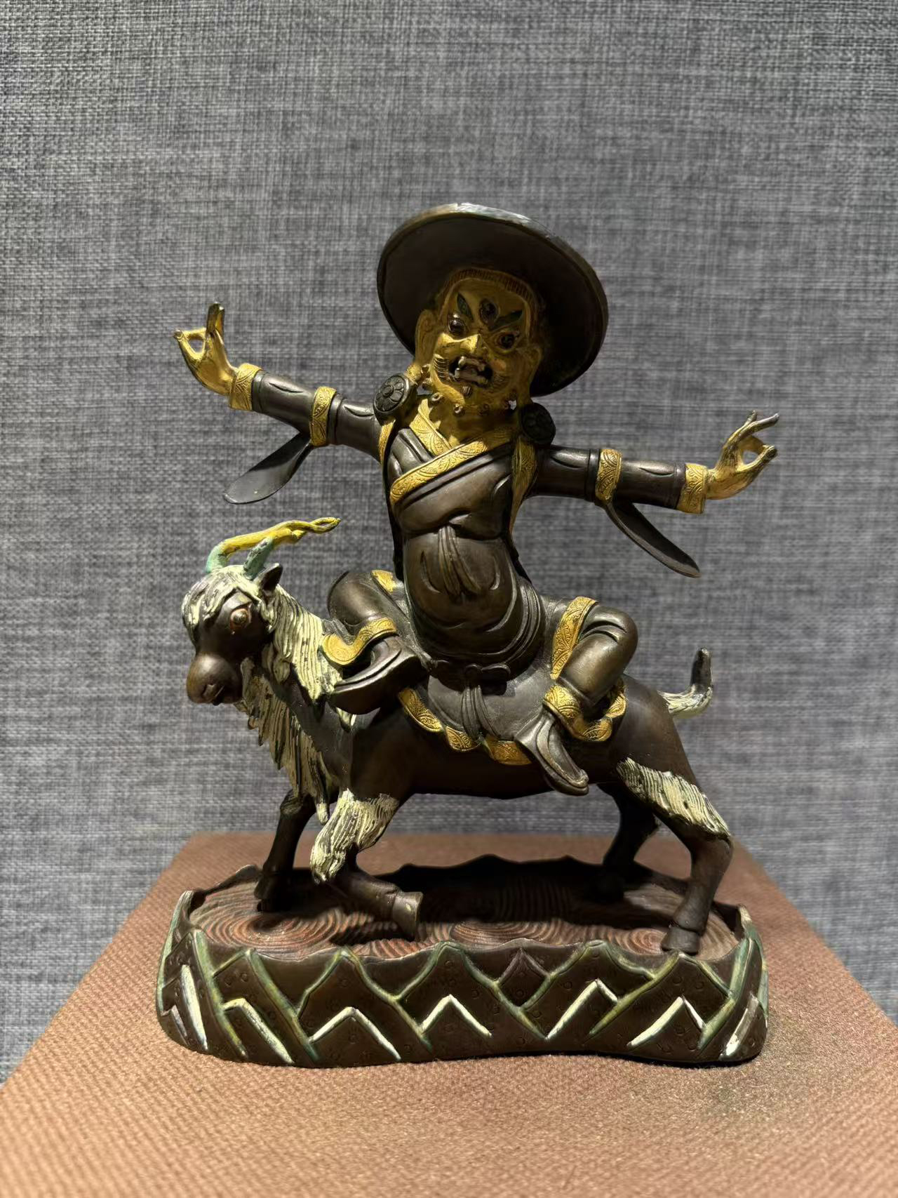 4234 铜鎏金骑羊护法