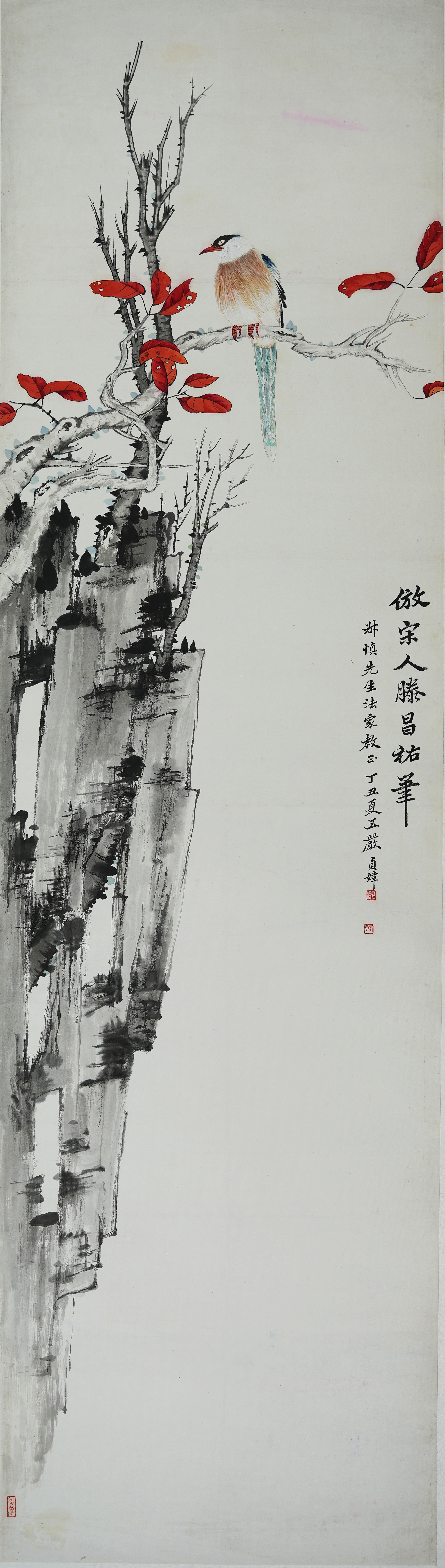 19 严贞炜(1913~2008) 红叶翠鸟