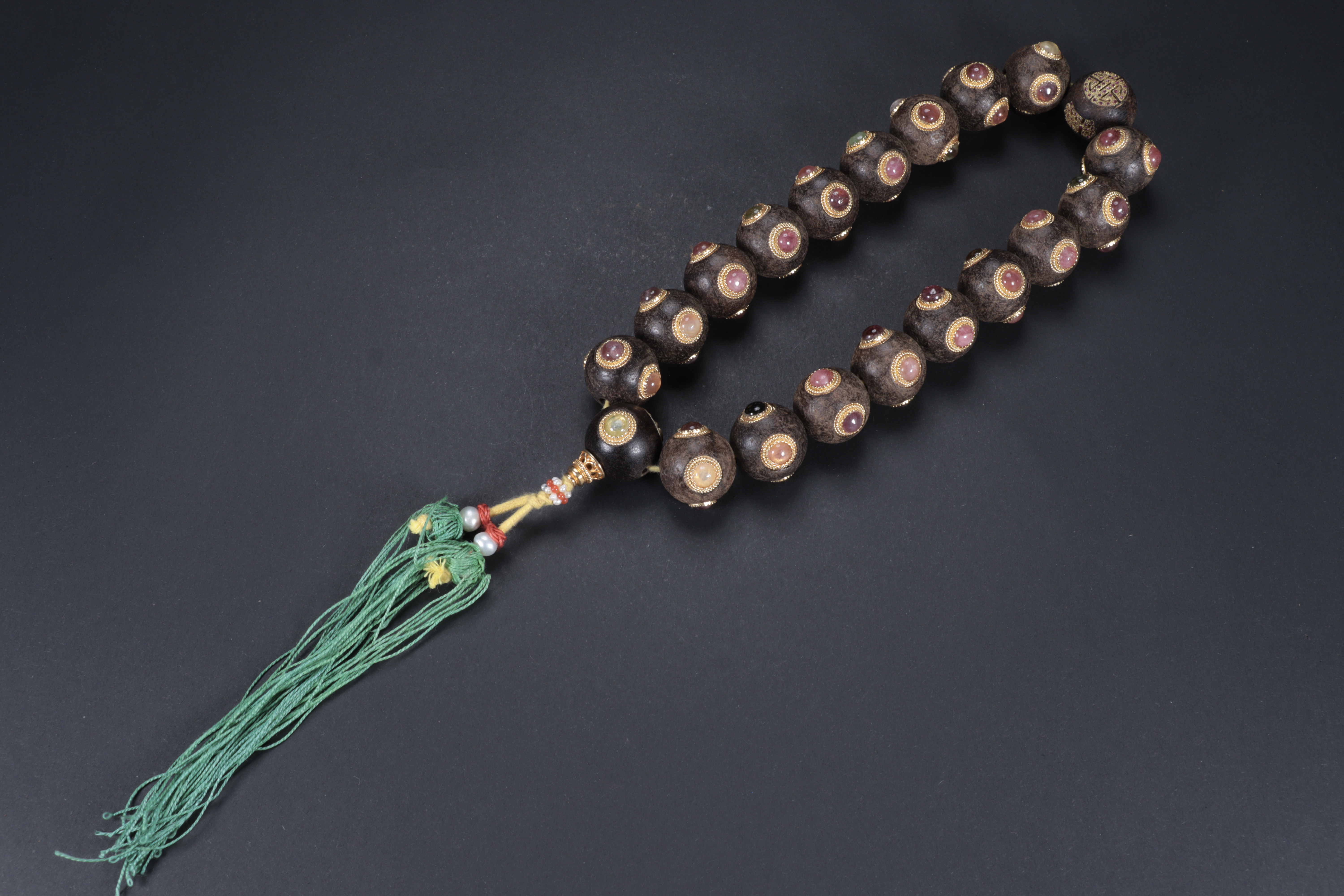 5142 宫廷沉香嵌宝石十八子手持念珠