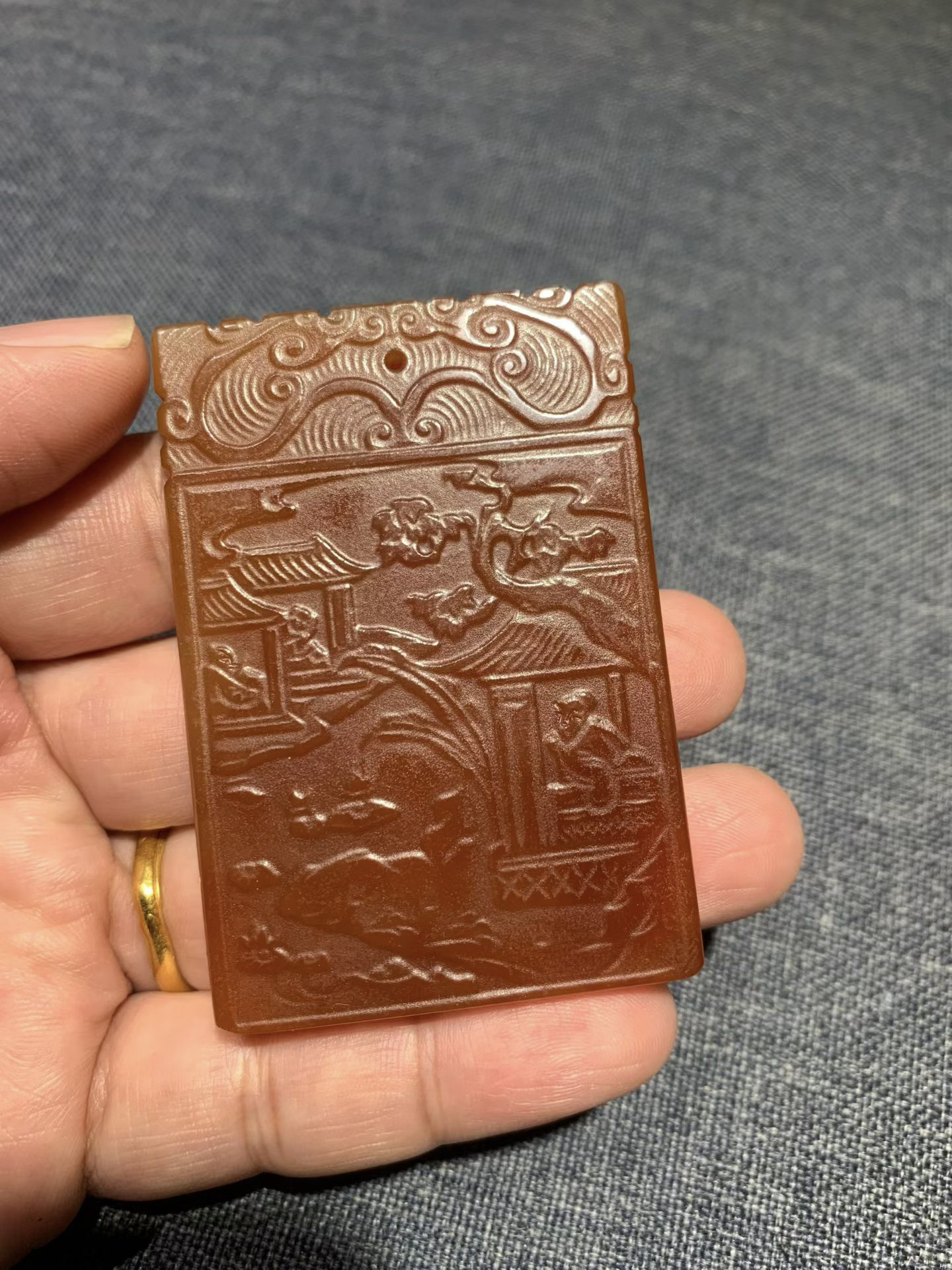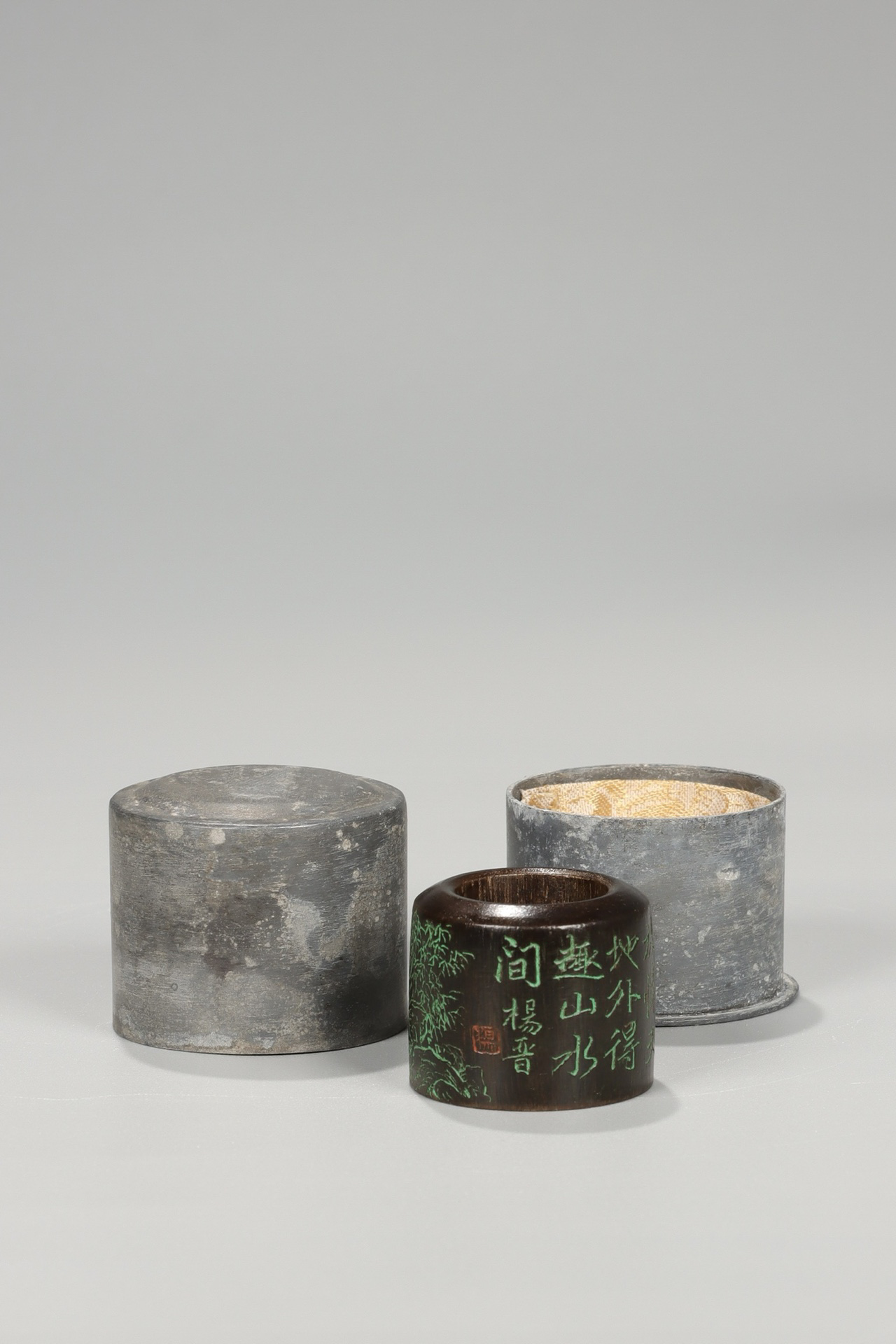 5150 “杨晋”款奇楠沉香山水诗文扳指