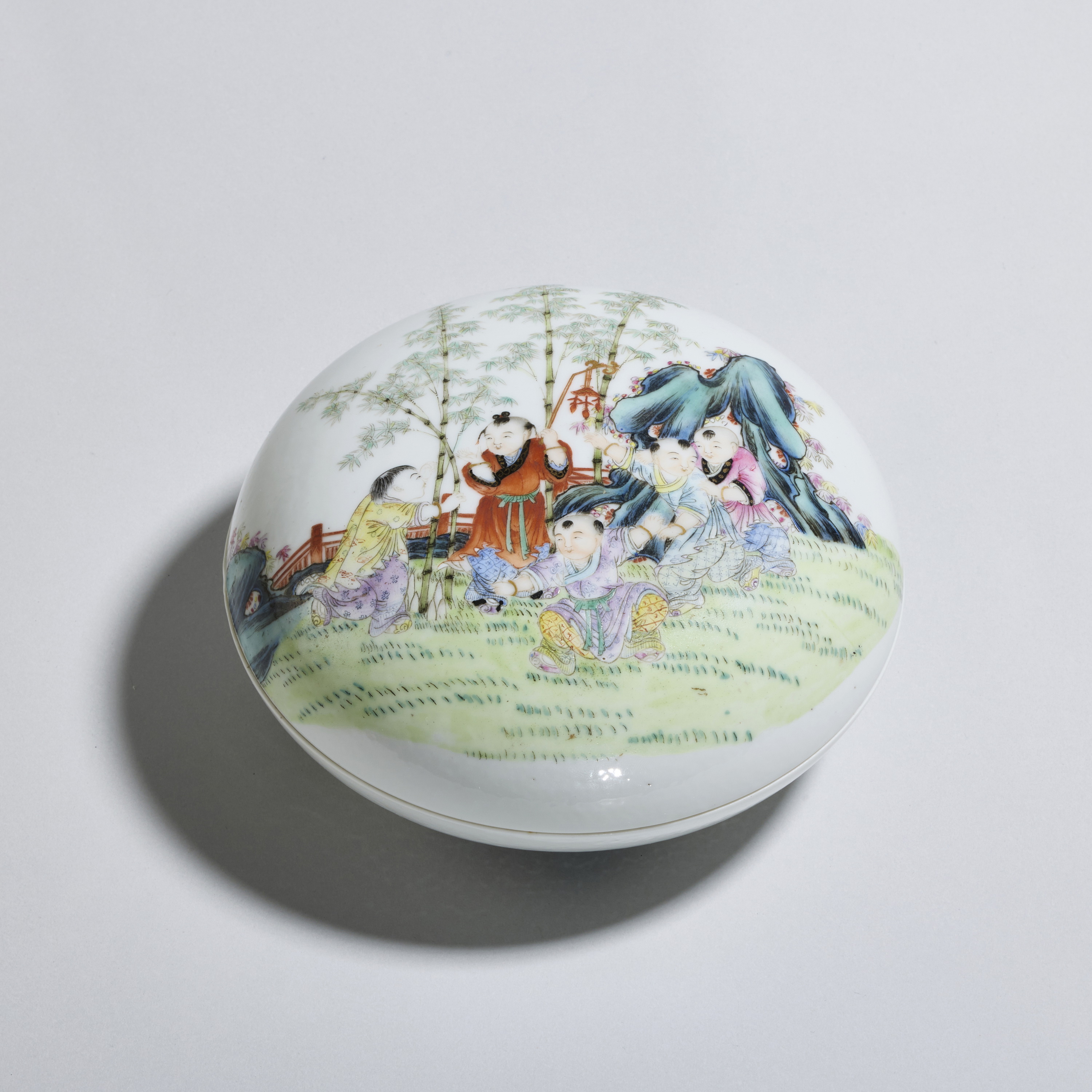 1 民国 洪宪御制款粉彩婴戏盖盒