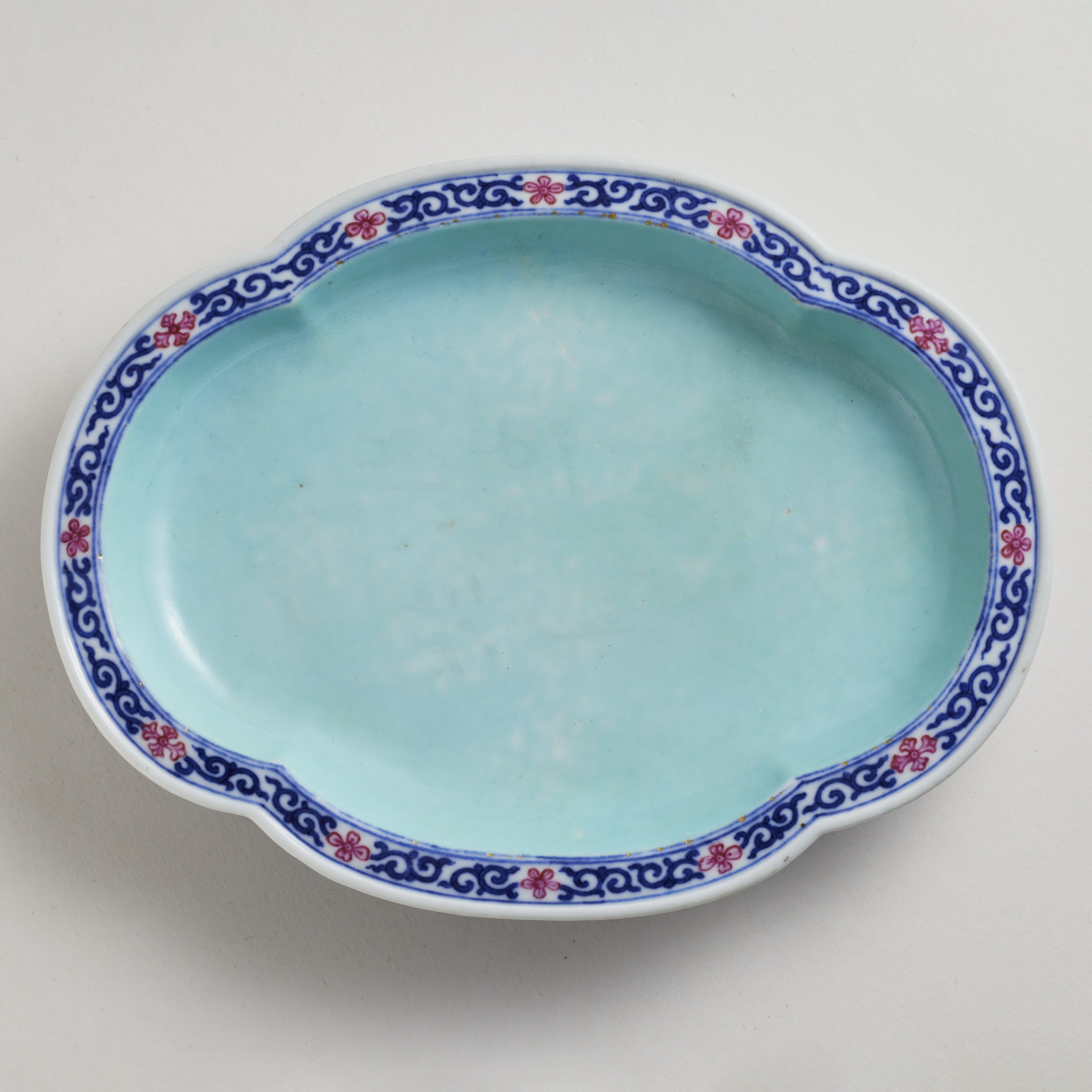 21 清乾隆 青花胭脂红彩宝相花纹海棠水盏