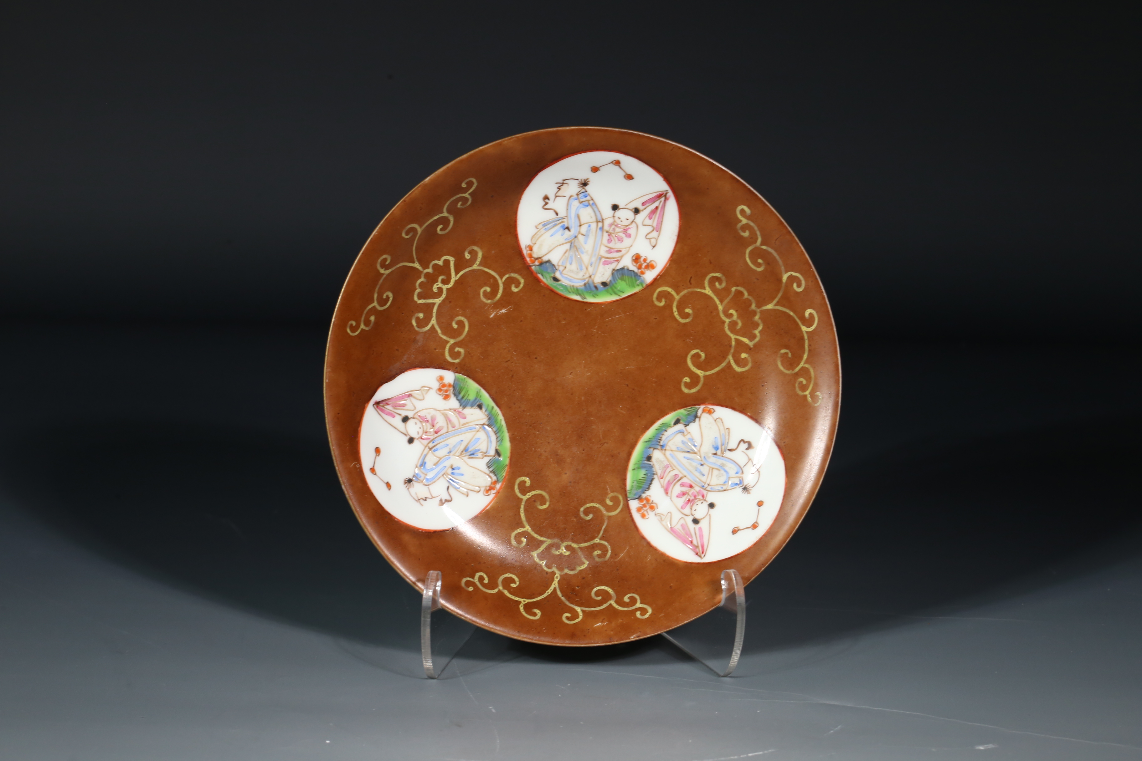 4505 紫金釉开窗粉彩人物故事什锦盘