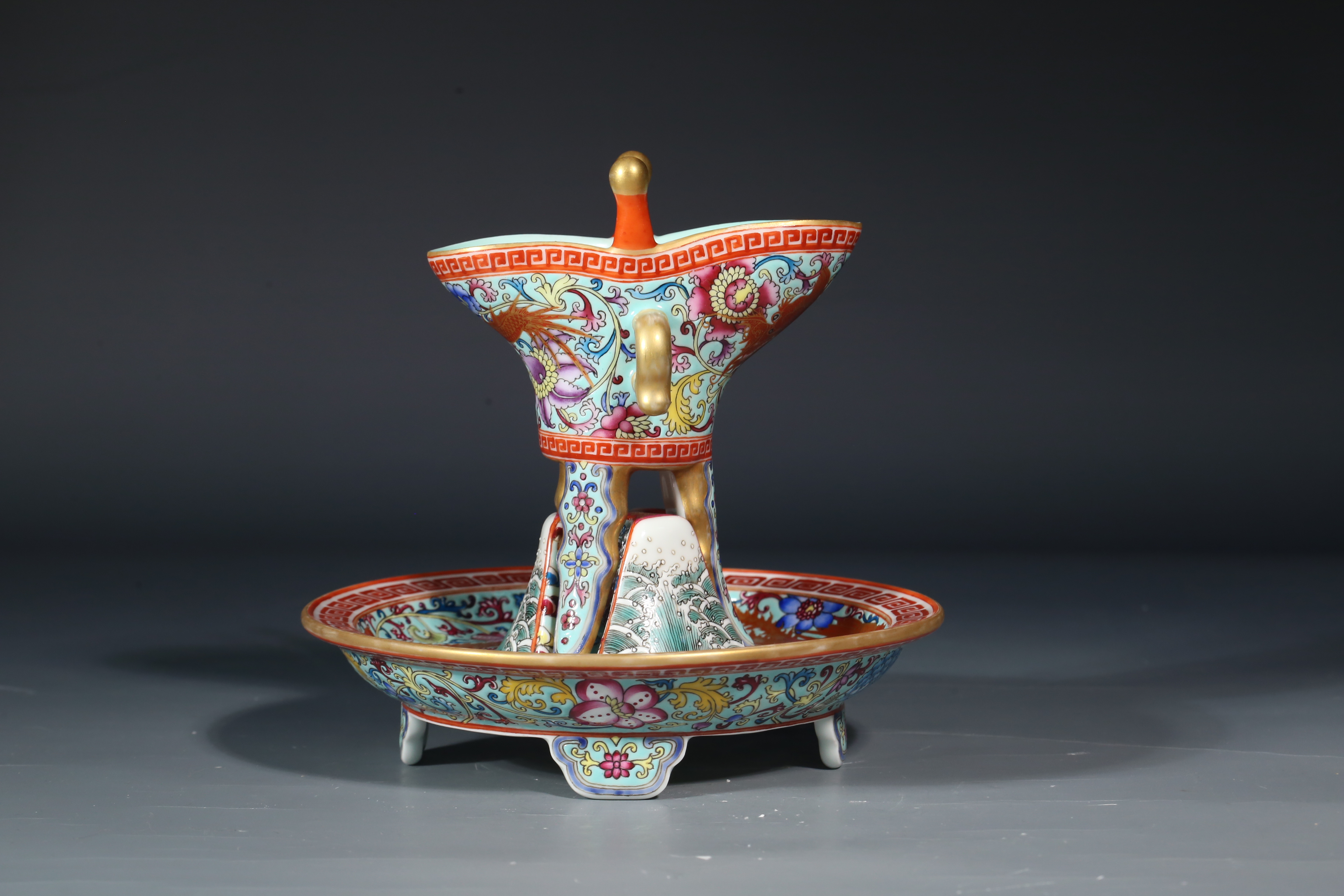 4520 洋彩龙凤纹爵杯盏托