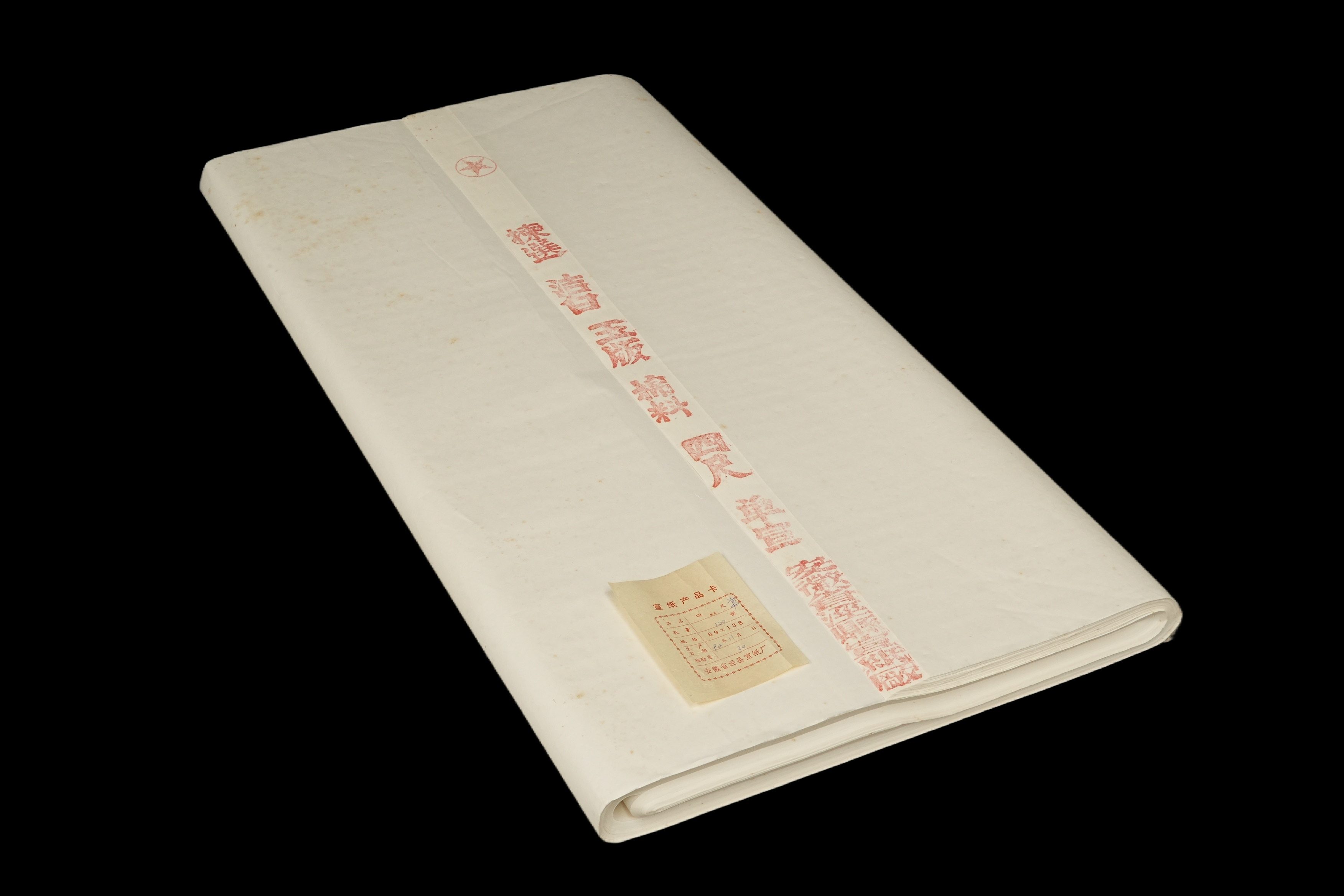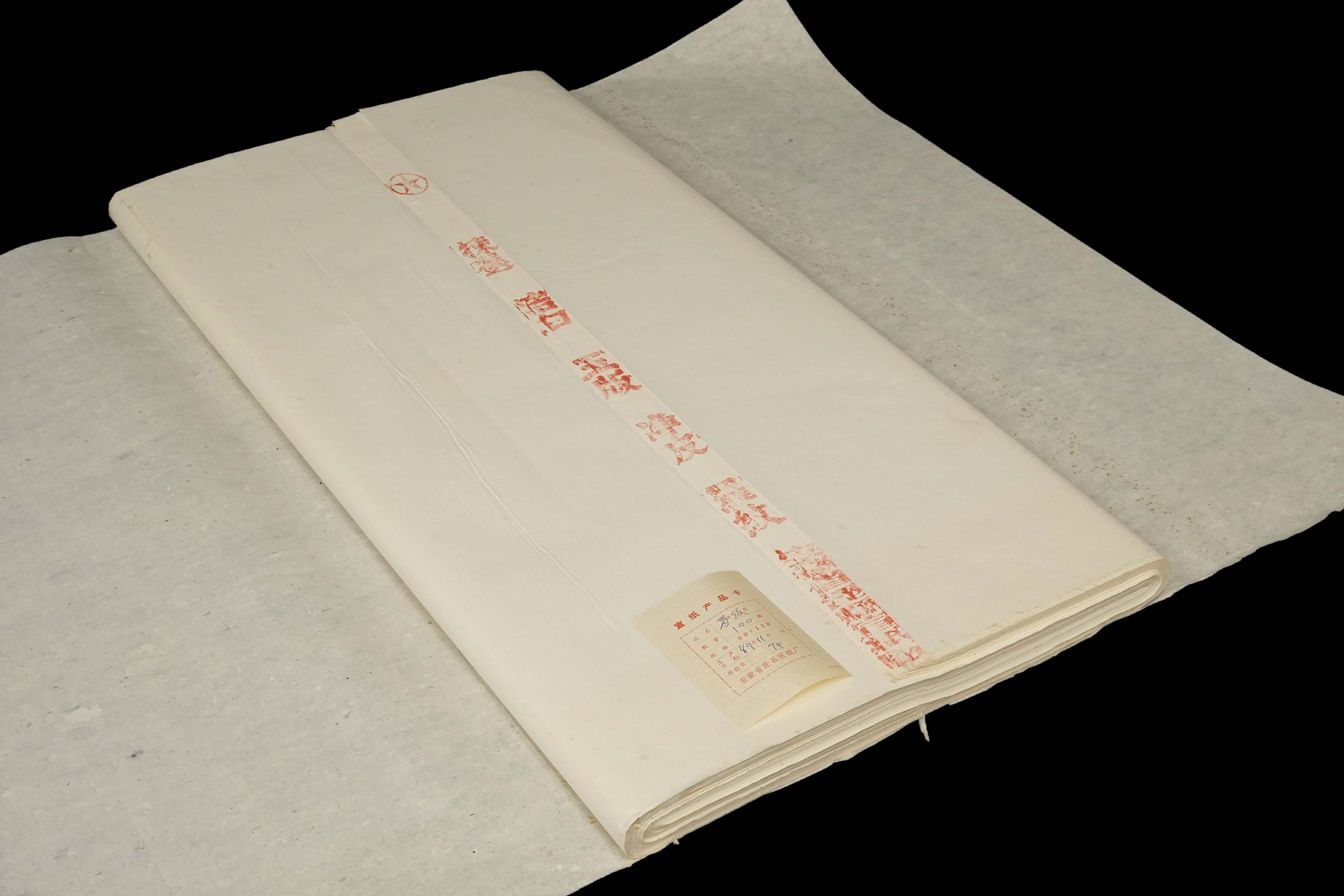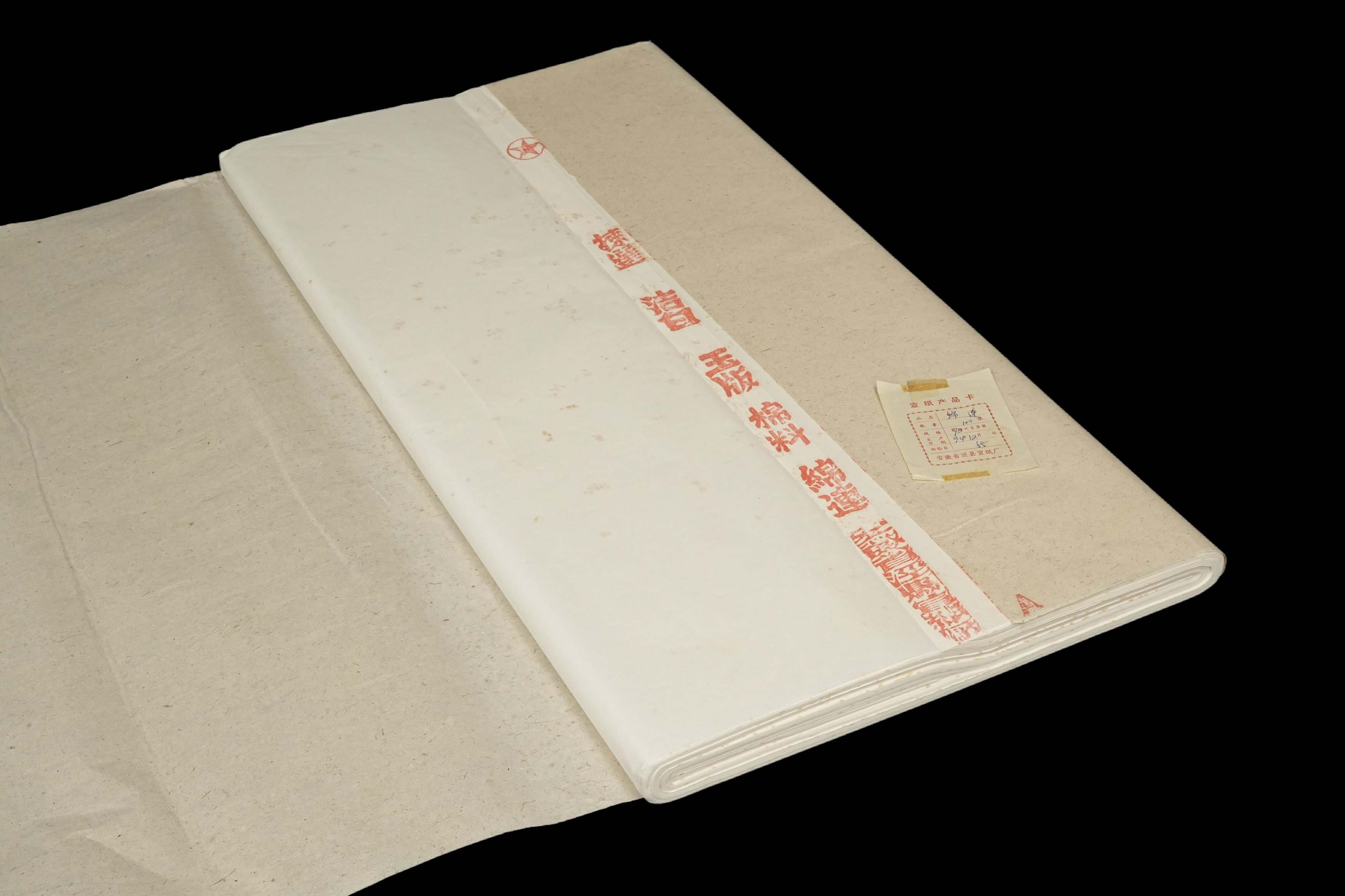 1511 1992年 安徽省泾县宣纸厂 红星牌超级棉料四尺罗纹 1刀100张 装箱单附
