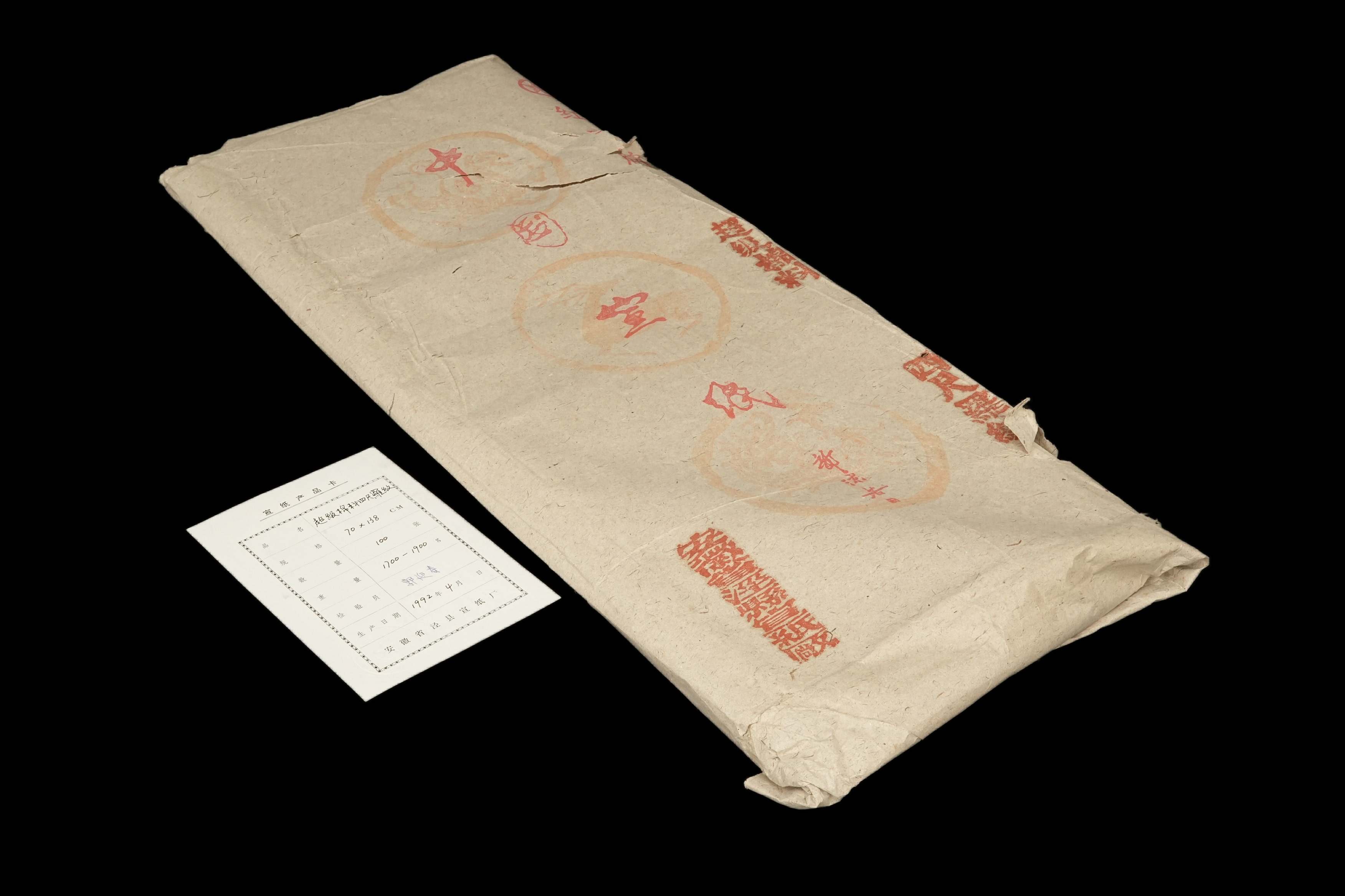 1515 1992年 安徽省泾县宣纸厂 超级棉料四尺罗纹 1刀100张 装箱单附