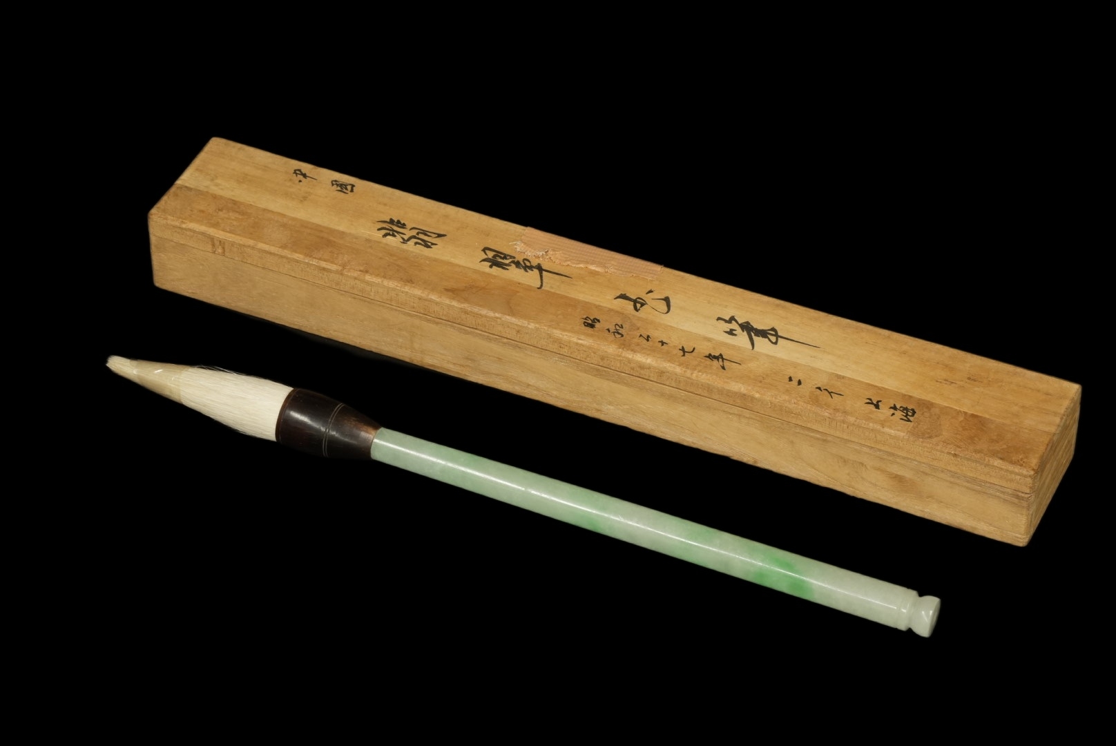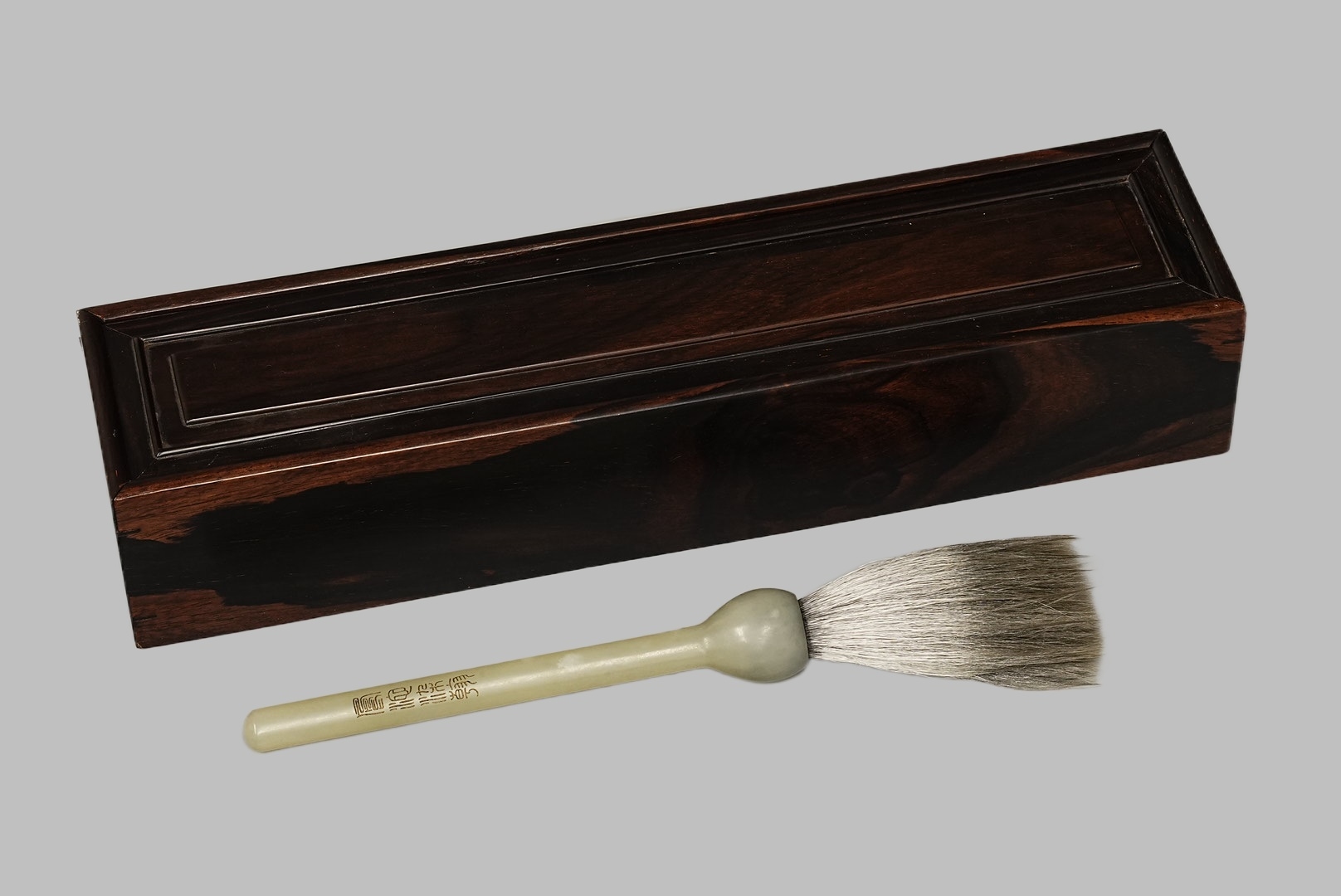 570 清 玉雕毛笔 日本桐箱附 在铭