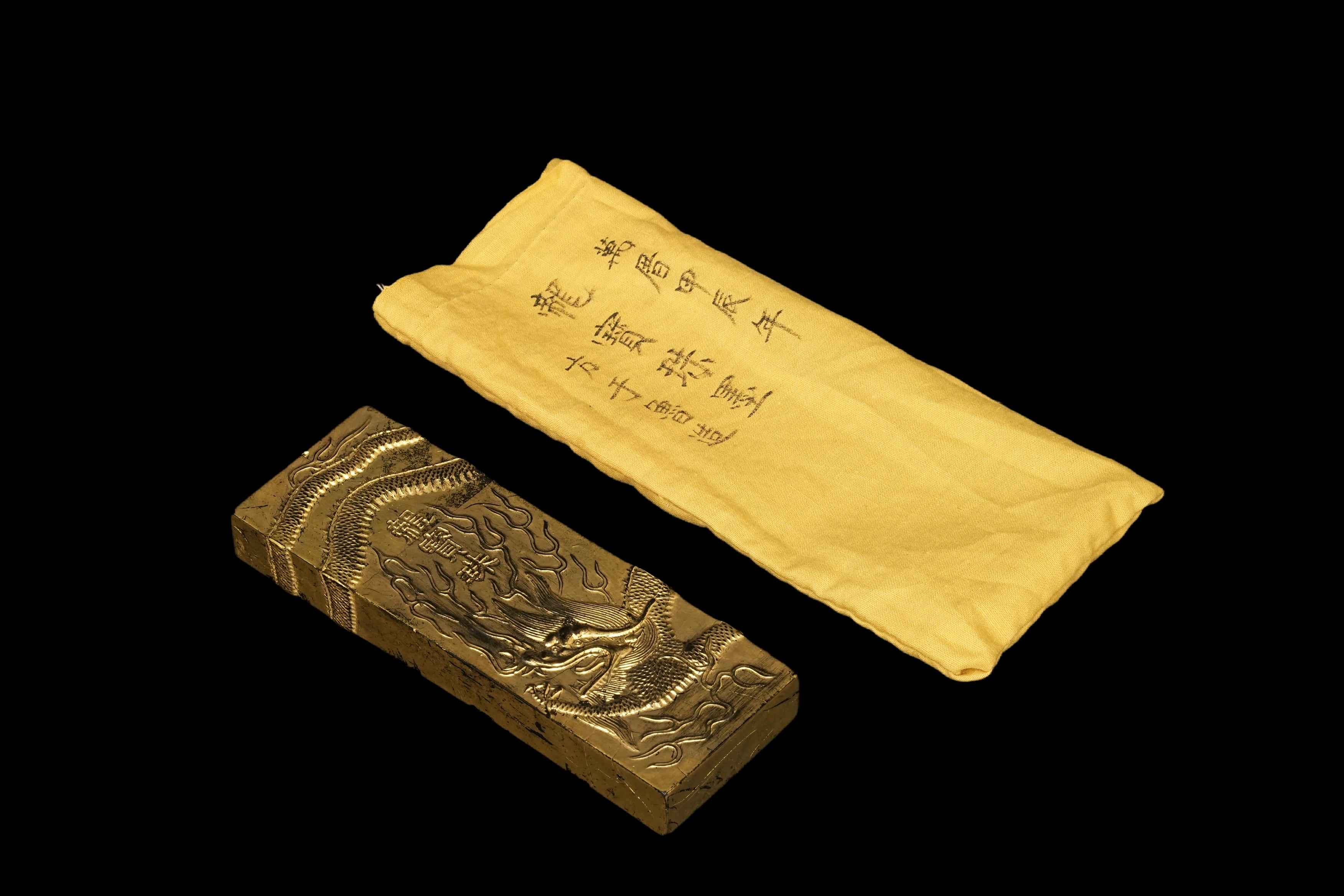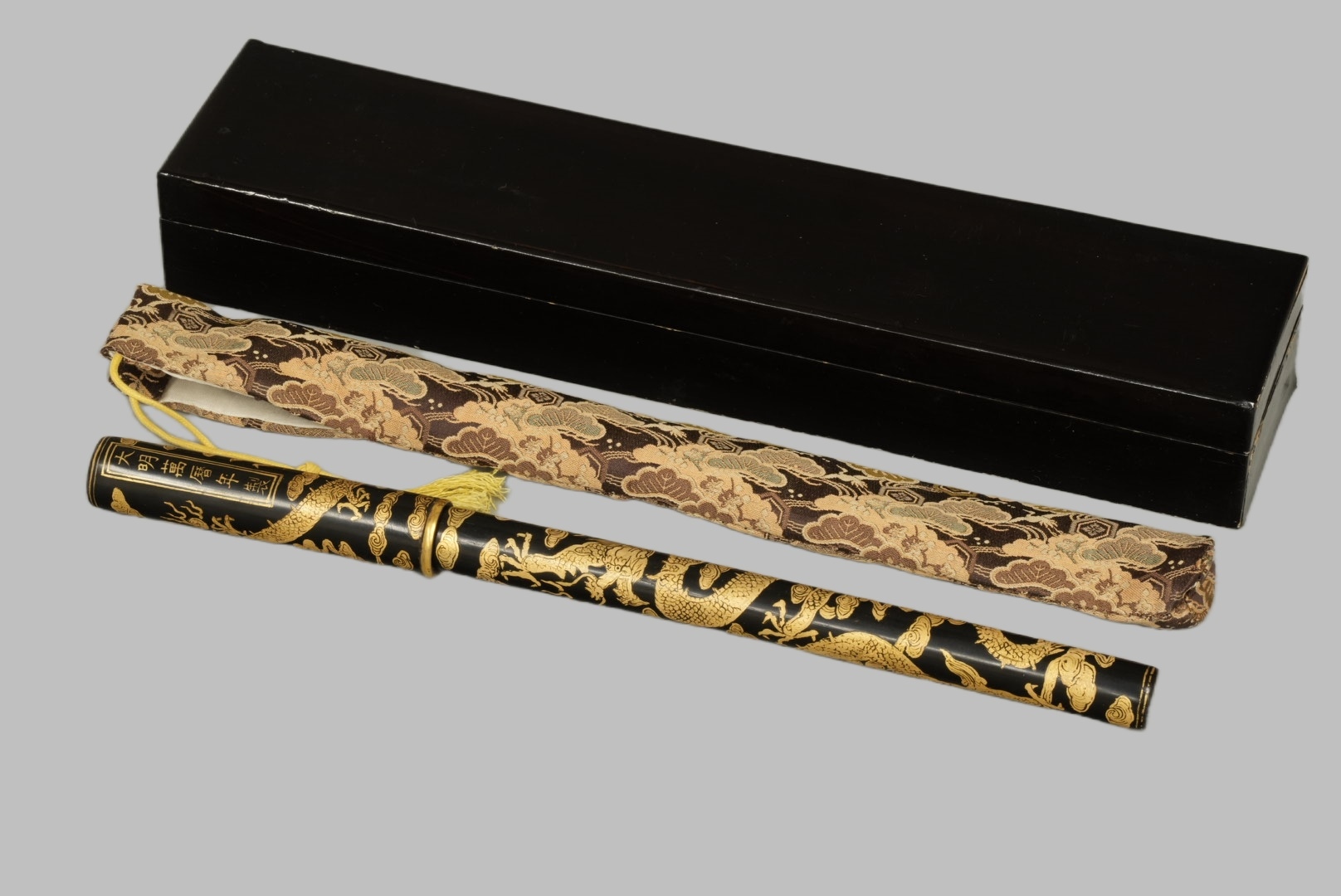 575 大明万历年制 黑漆描金龙纹毛笔 箱附