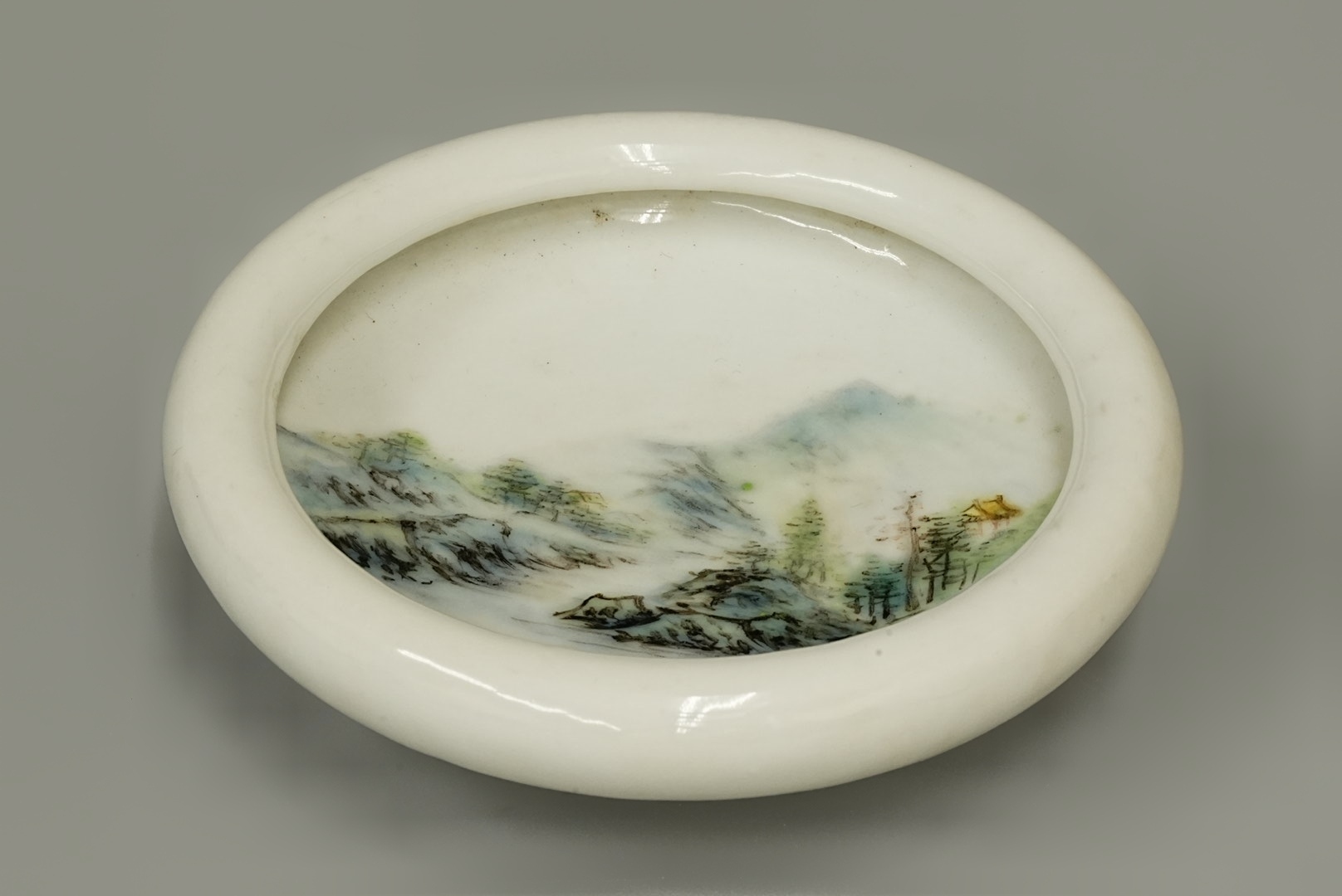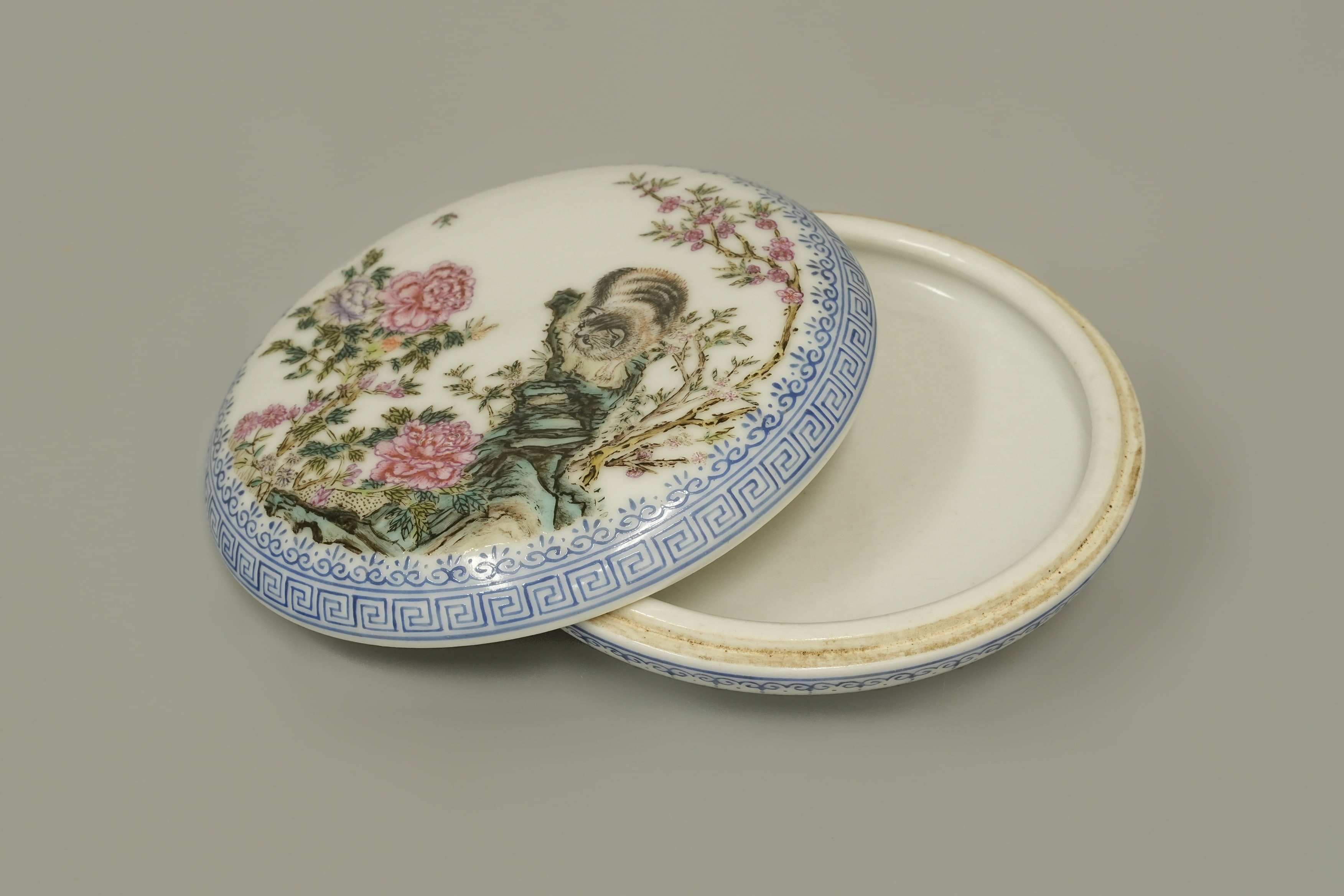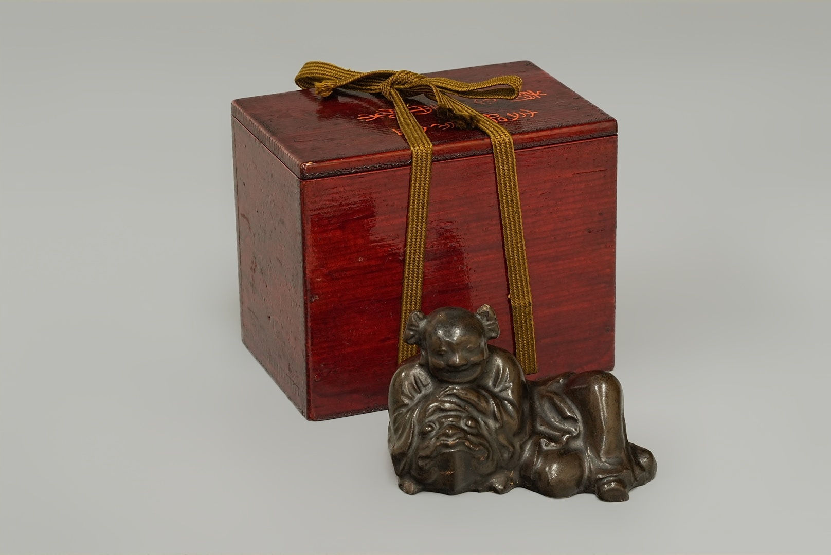 583 清 瓷雕刘海戏金蟾卧像 日本桐箱附