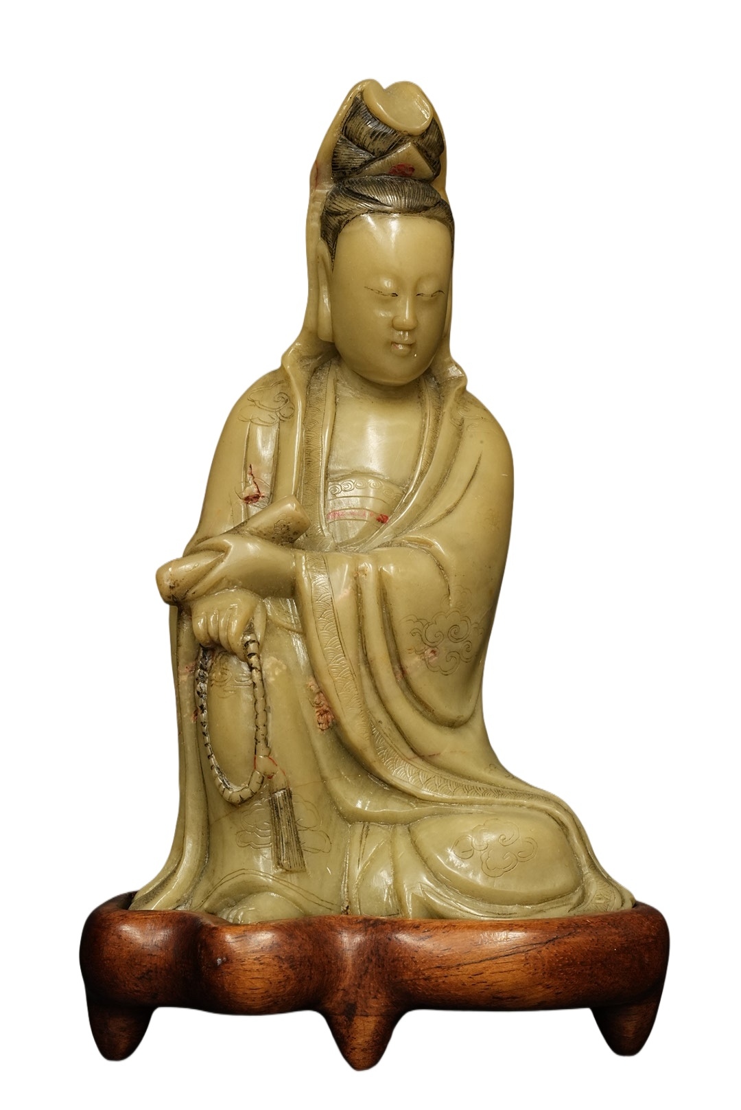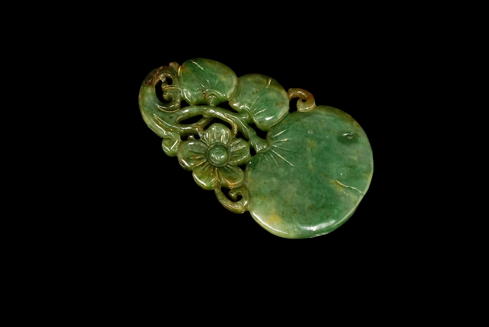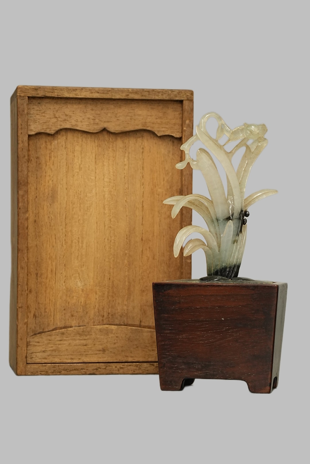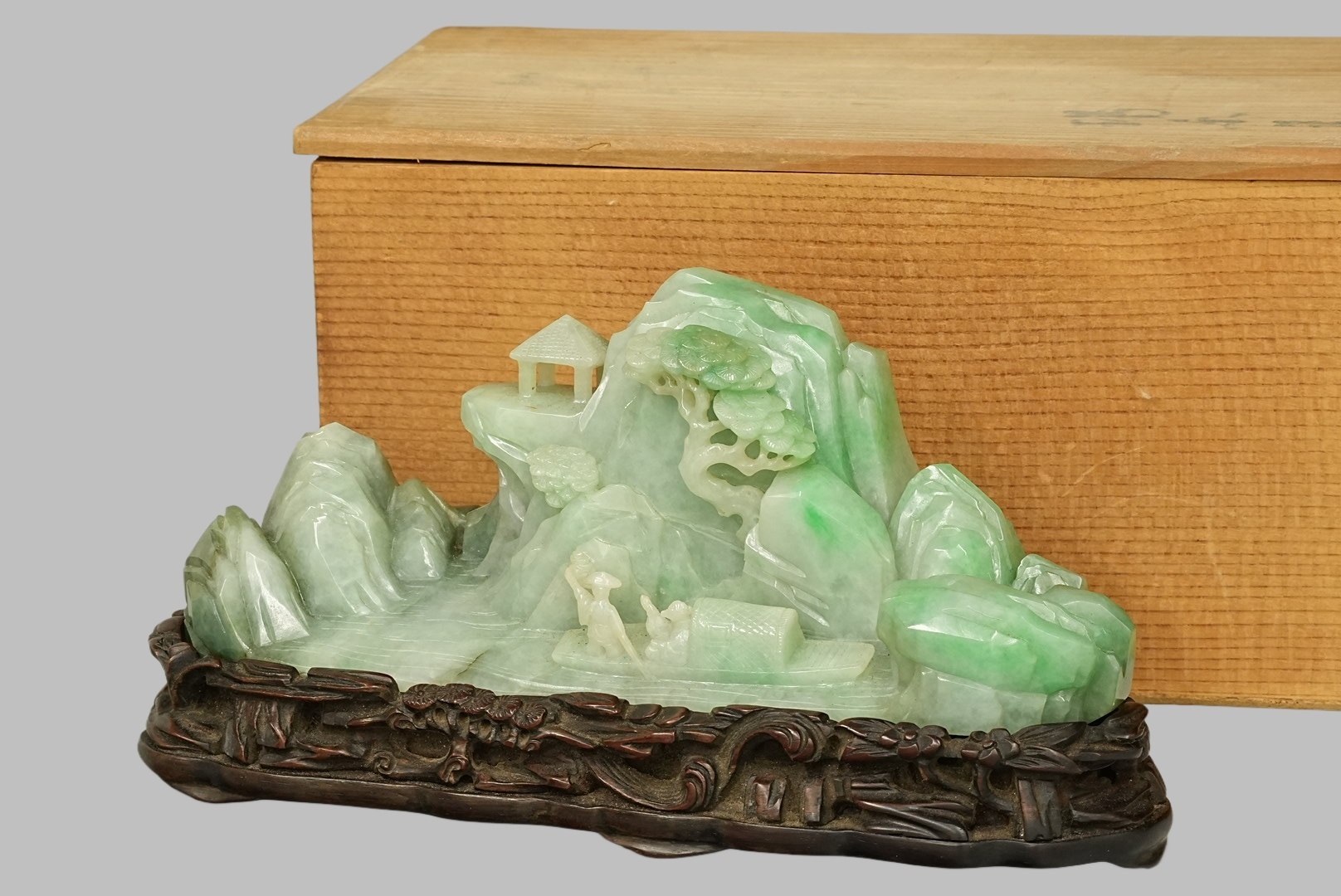 748 清 翡翠雕山水人物摆件 托附 日本桐箱附