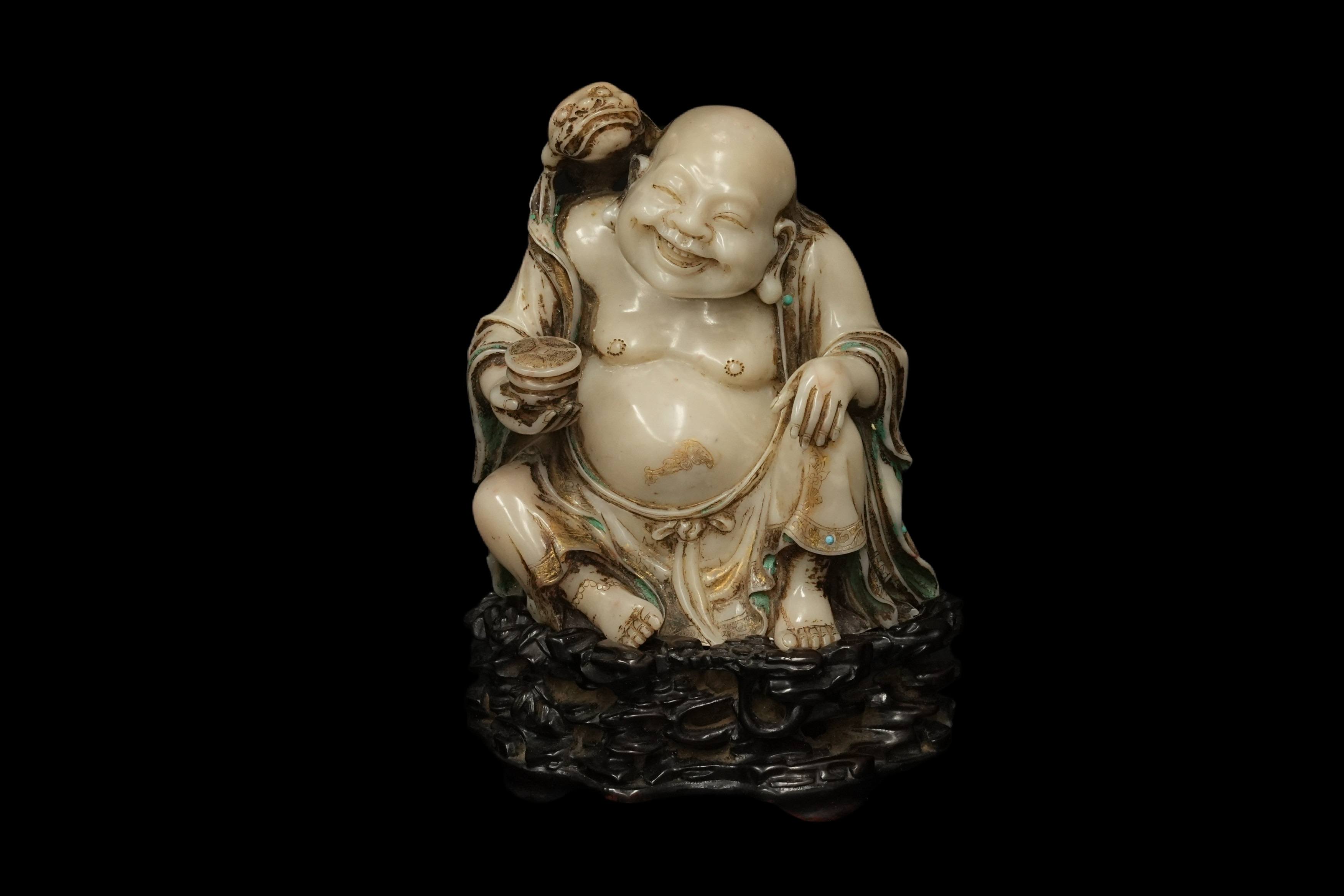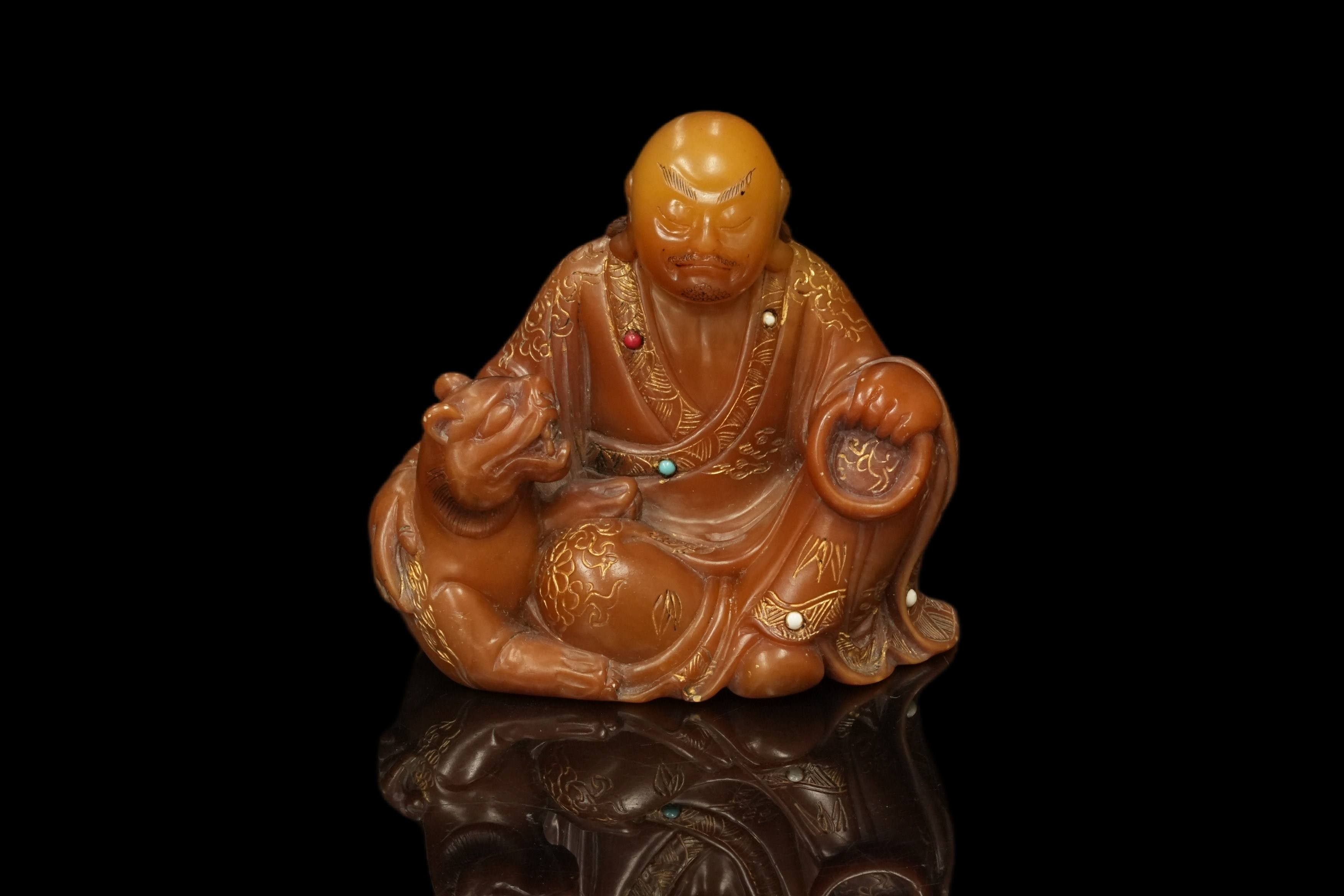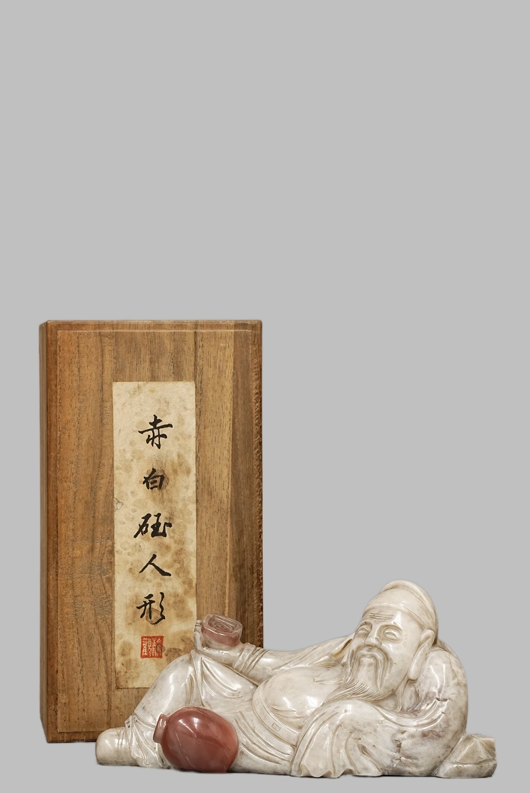 736 清 南红玛瑙巧雕太白醉酒摆件 日本桐箱附