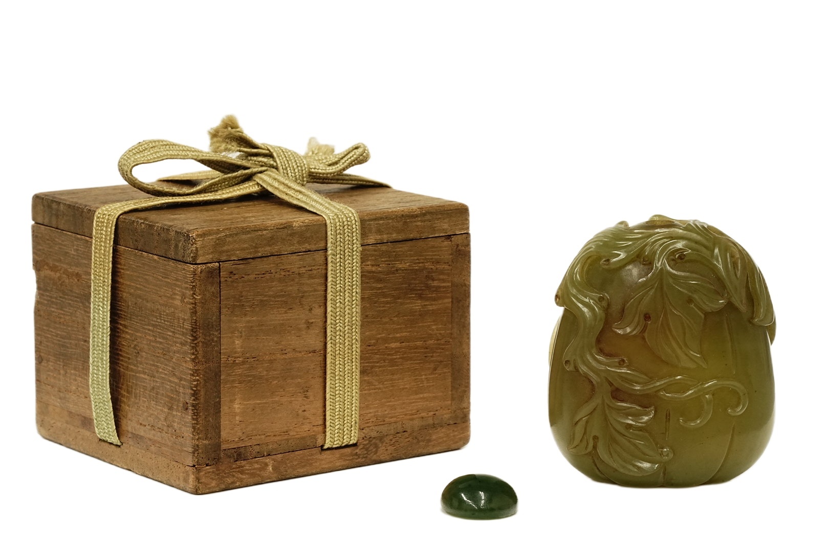 751 清 黄玉雕鼻烟壶 日本桐箱附