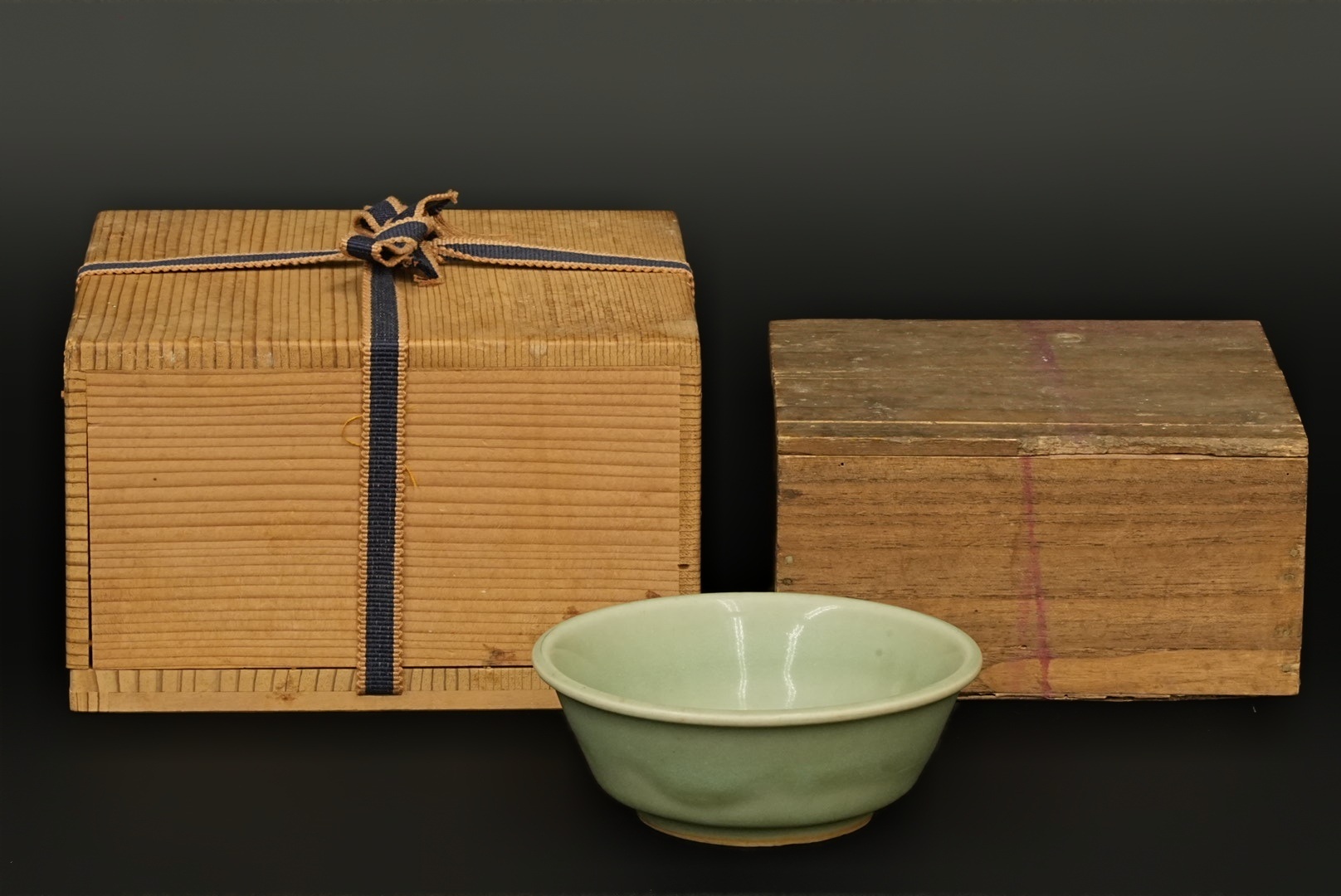 923 南宋 龙泉青瓷盏 日本双重箱附