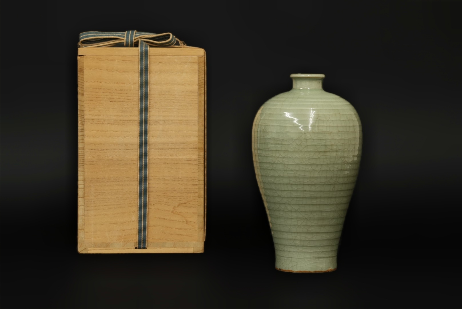 927 明 龙泉青瓷弦纹梅瓶 日本桐箱附