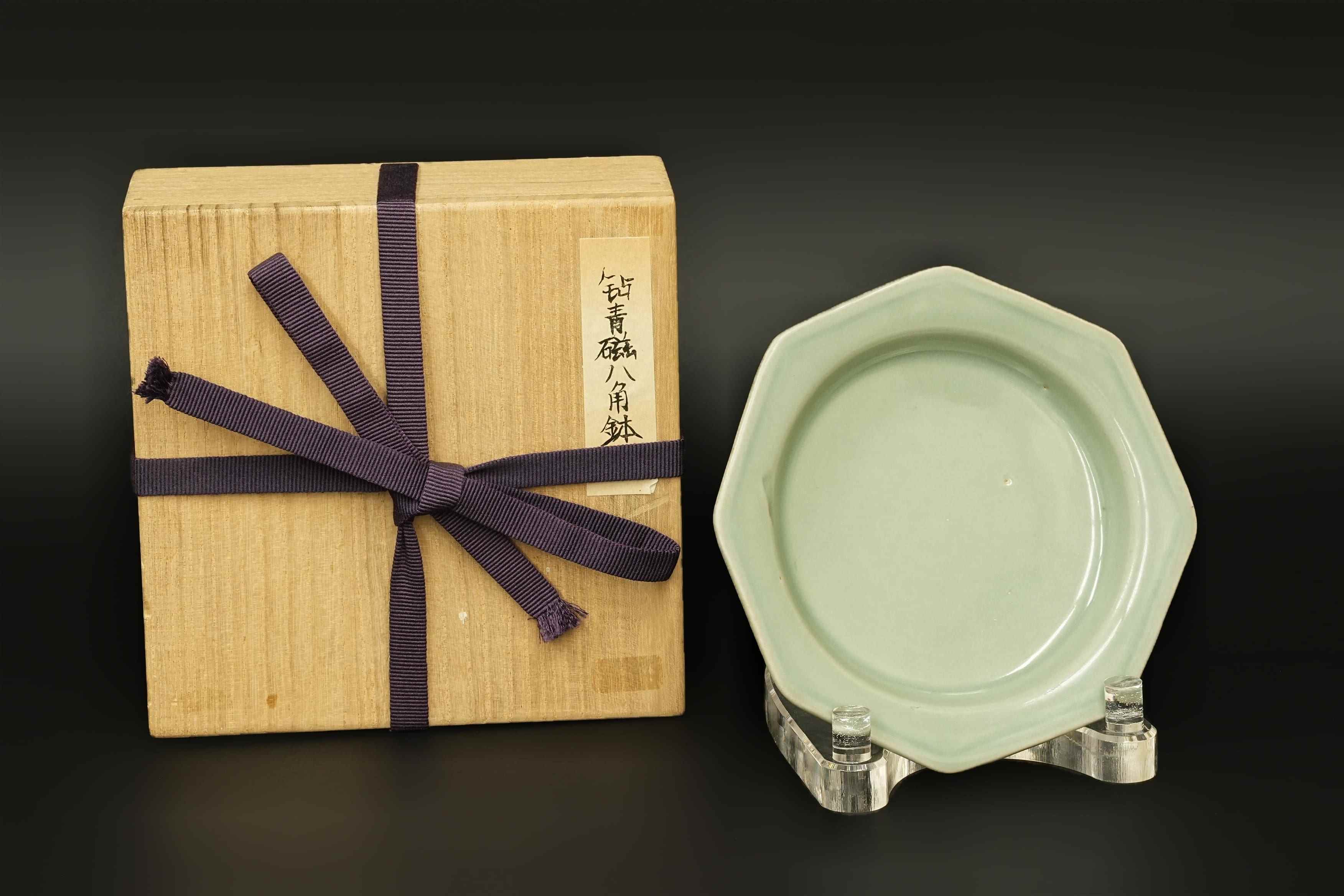931 宋 龙泉青瓷八角盘 日本桐箱附