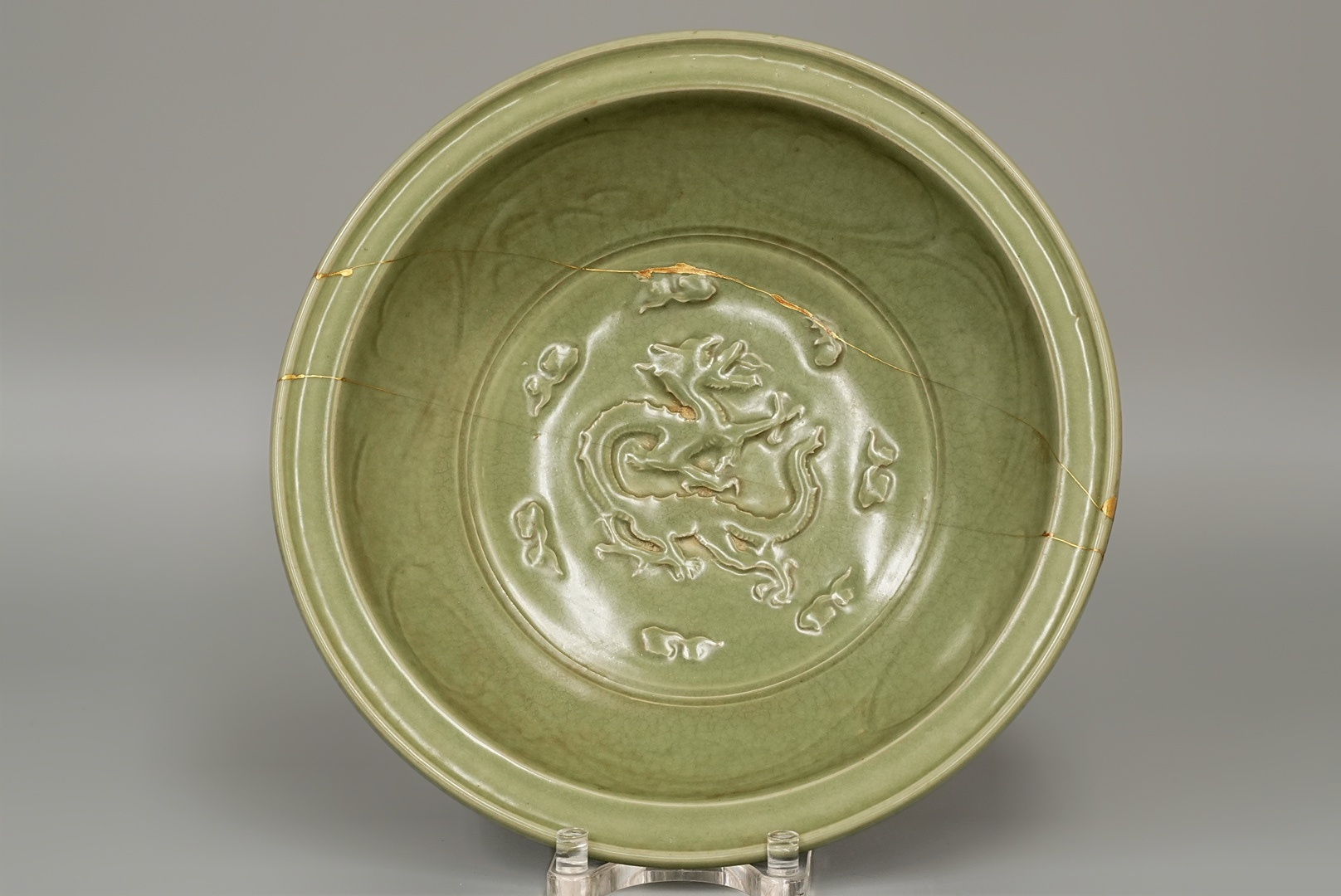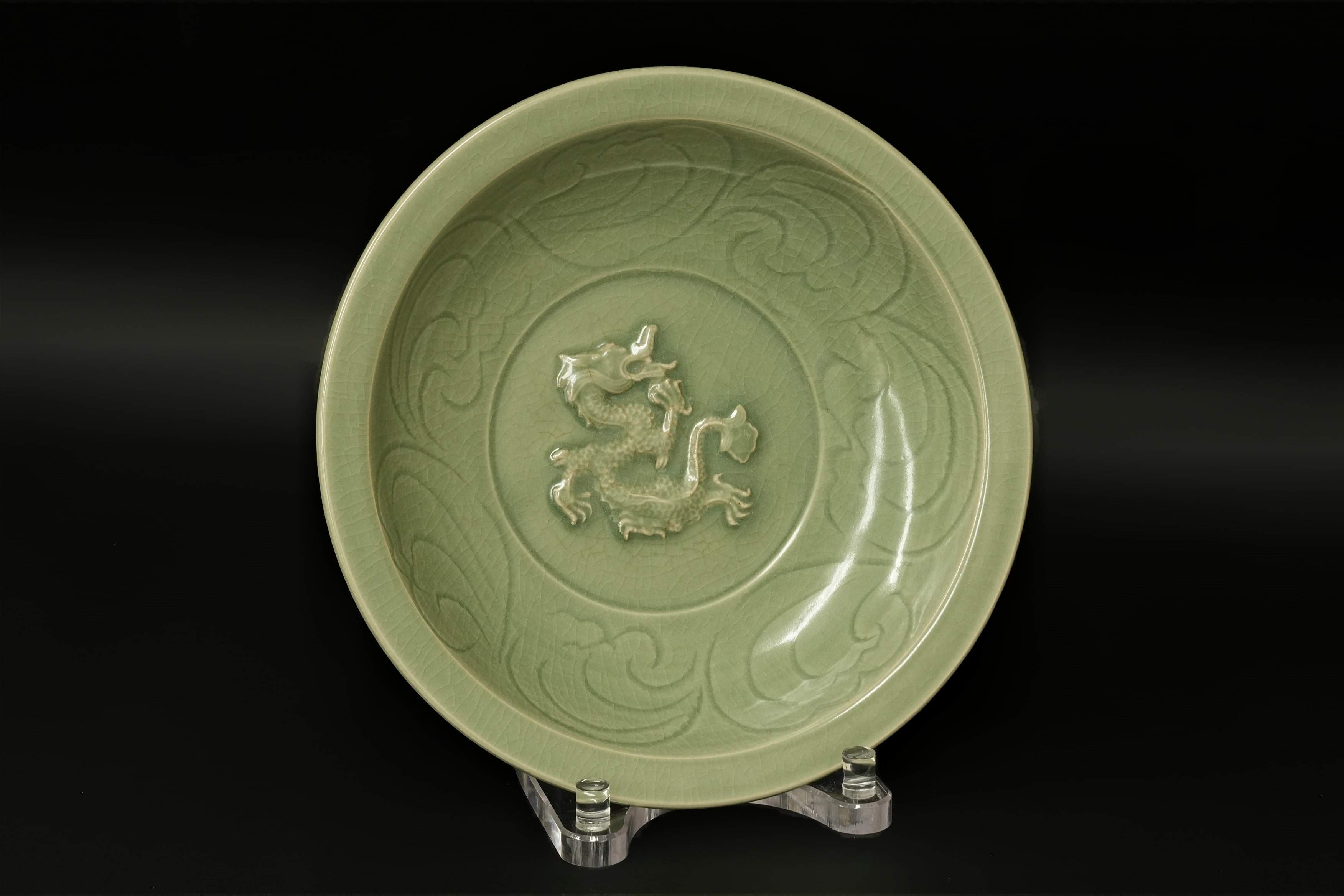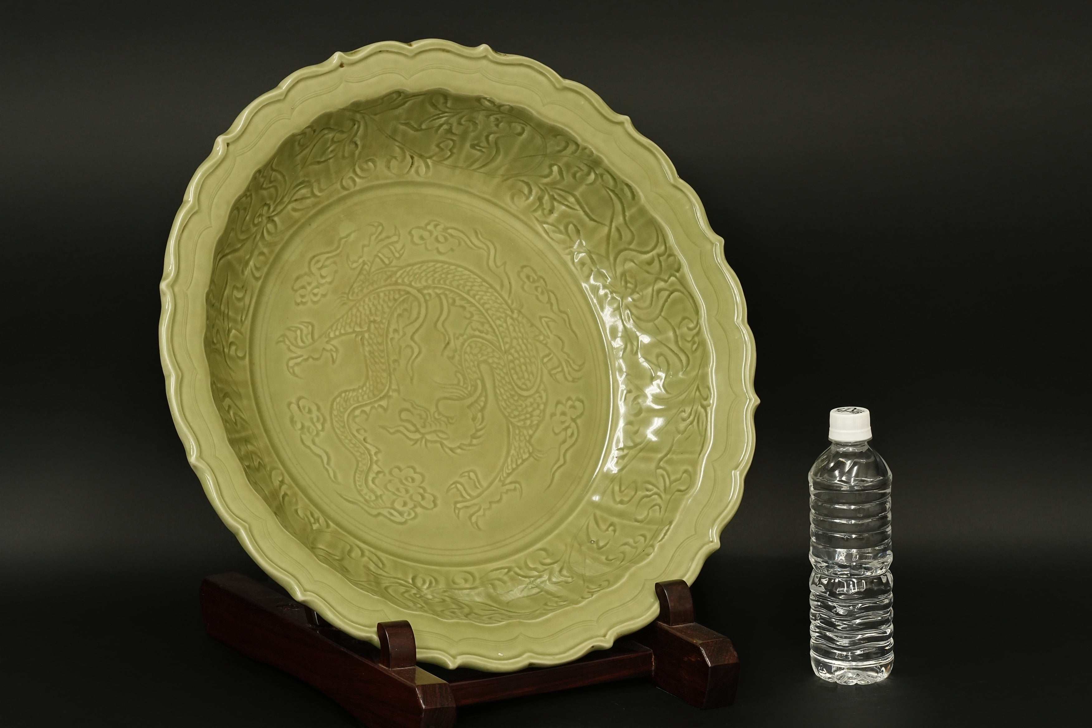 938 明洪武 处州龙泉青瓷龙纹花口大盘