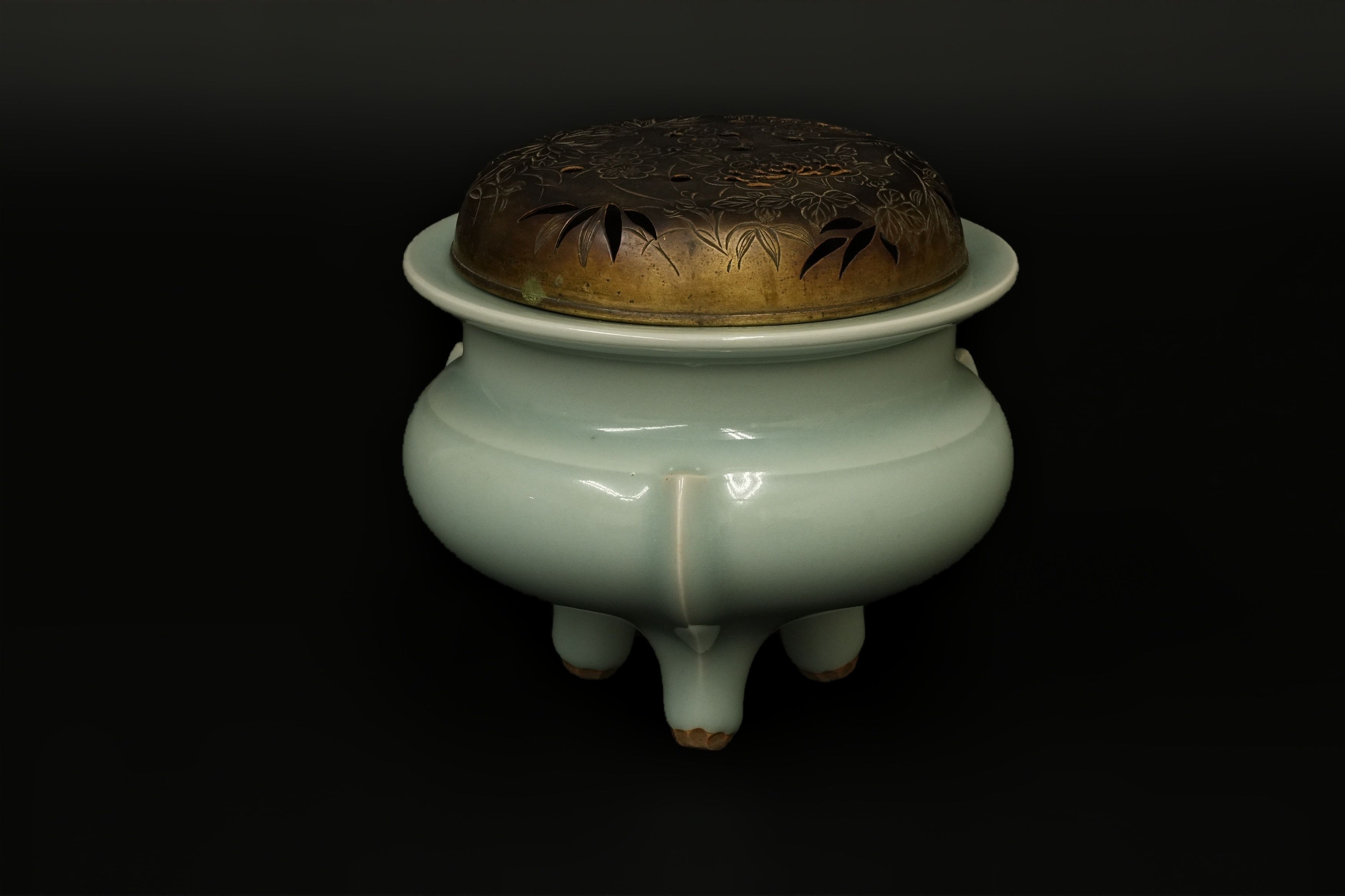 941 宋 龙泉青瓷三足炉 日本桐箱附
