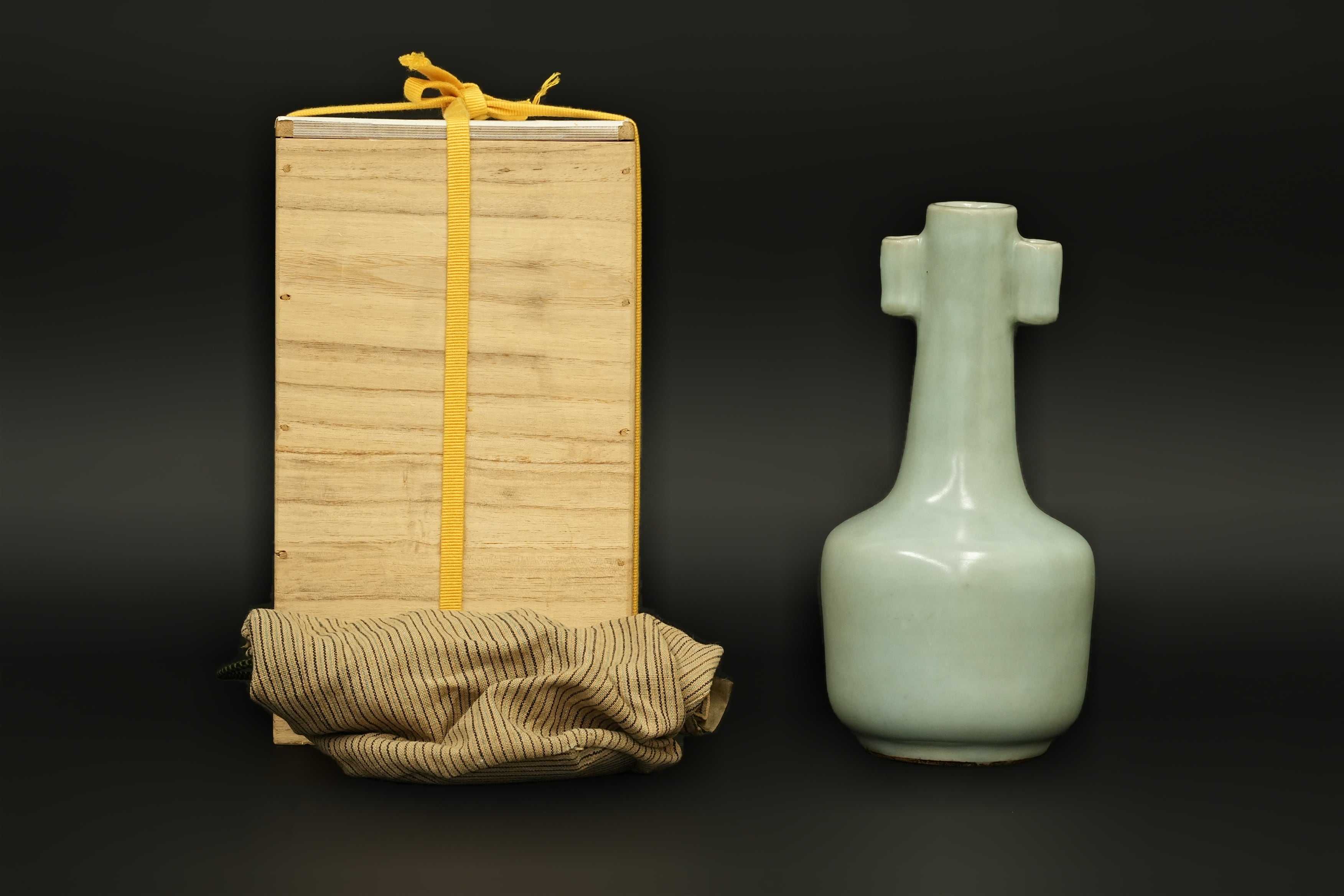 942 宋 龙泉青瓷贯耳瓶 日本桐箱附