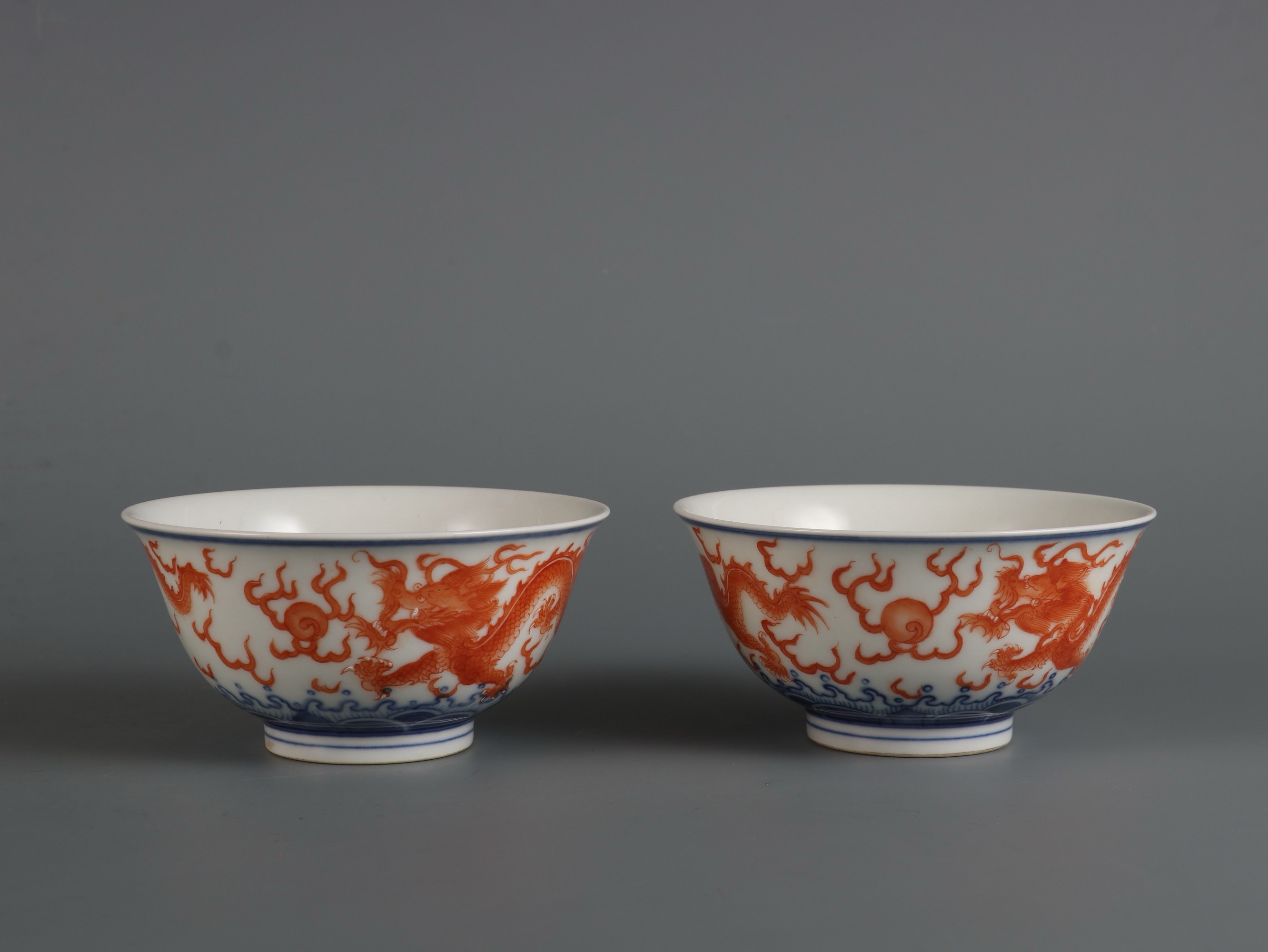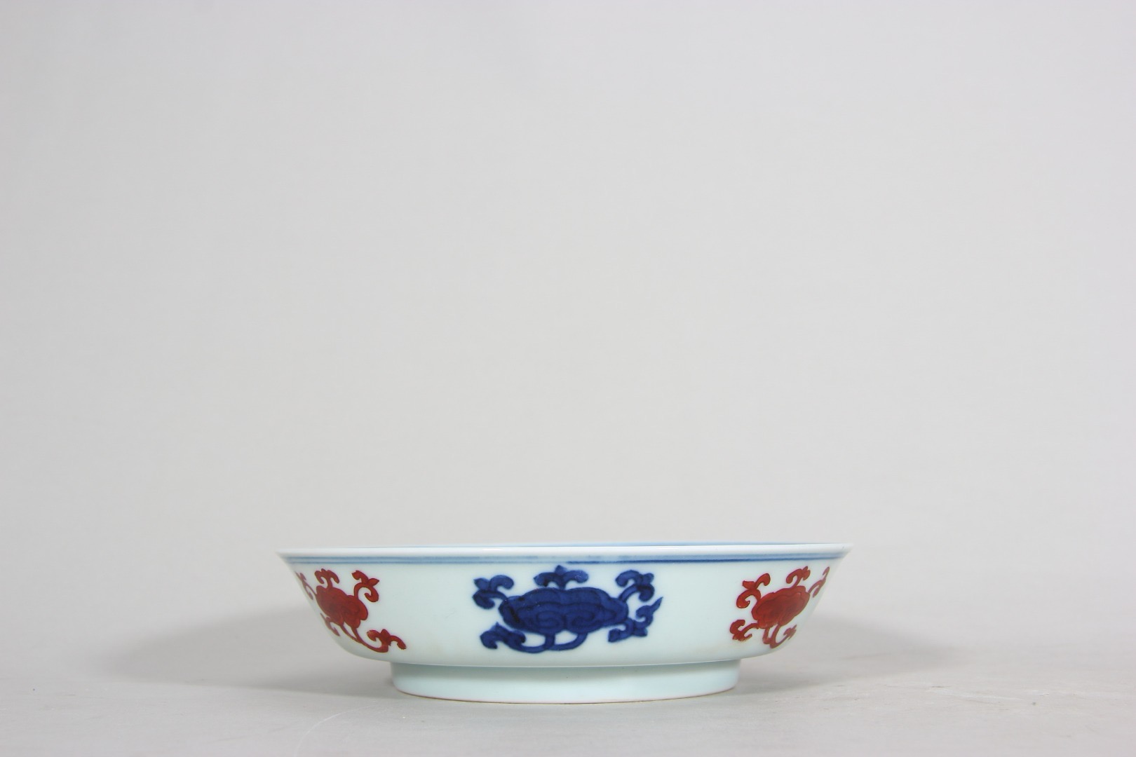 3222 胭脂红釉内墨彩云龙纹卧足盘