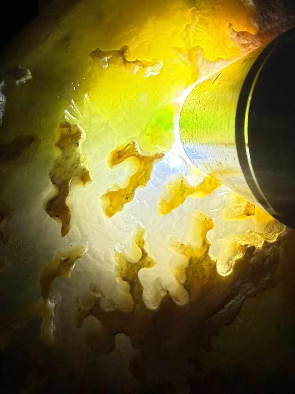 8 来自于老坑南齐敞口,开窗处表现为黄加绿,整体料型完美,有手镯位,重量:6330克