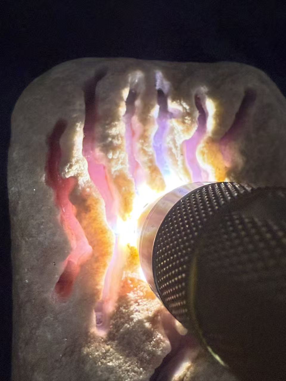 4 来自于老坑木纳杨梅皮,开窗处表现为紫罗兰,整体料型完美,有手镯牌子位,重量:2300克