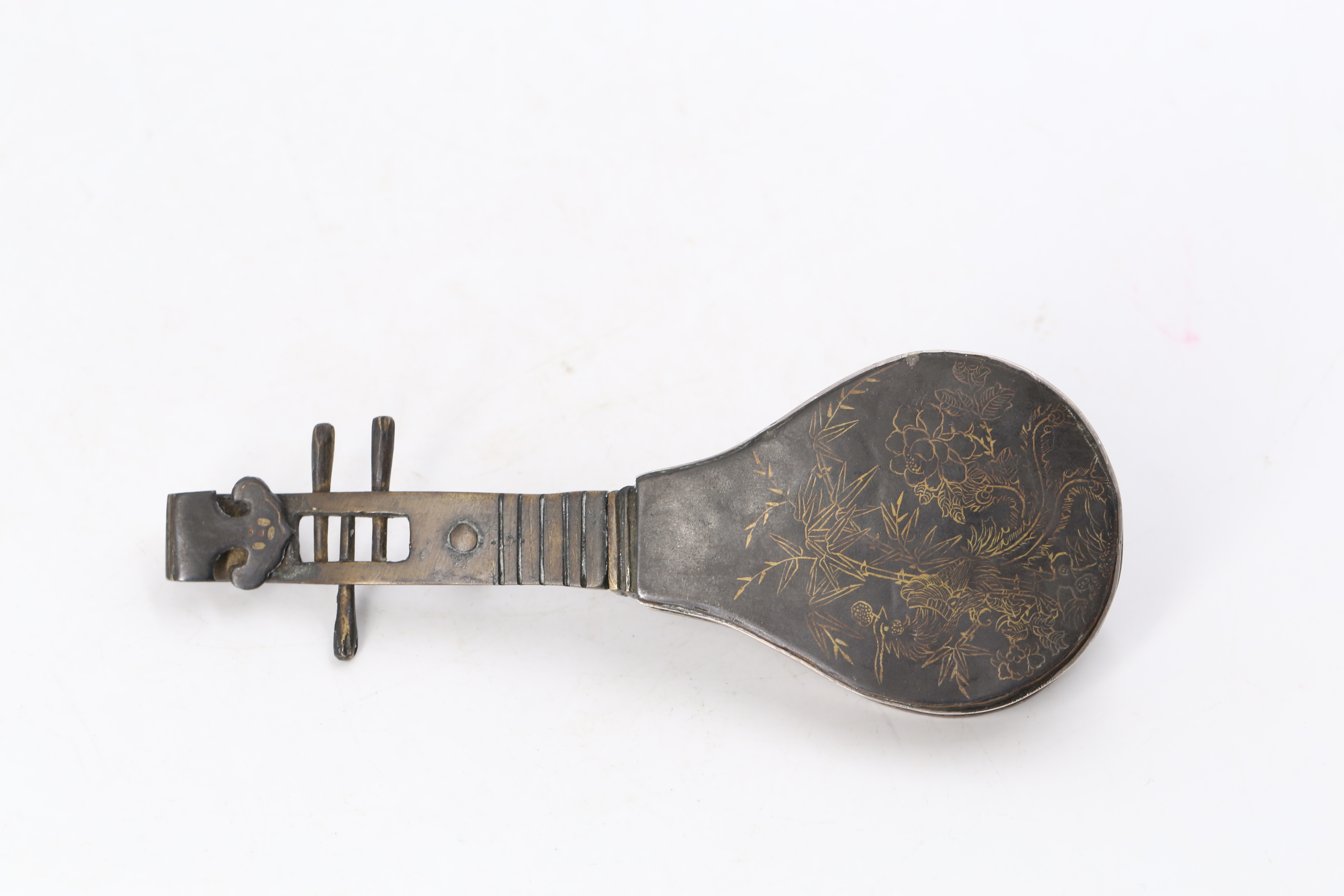1002 铜枇杷形刻凤穿牡丹纹锁