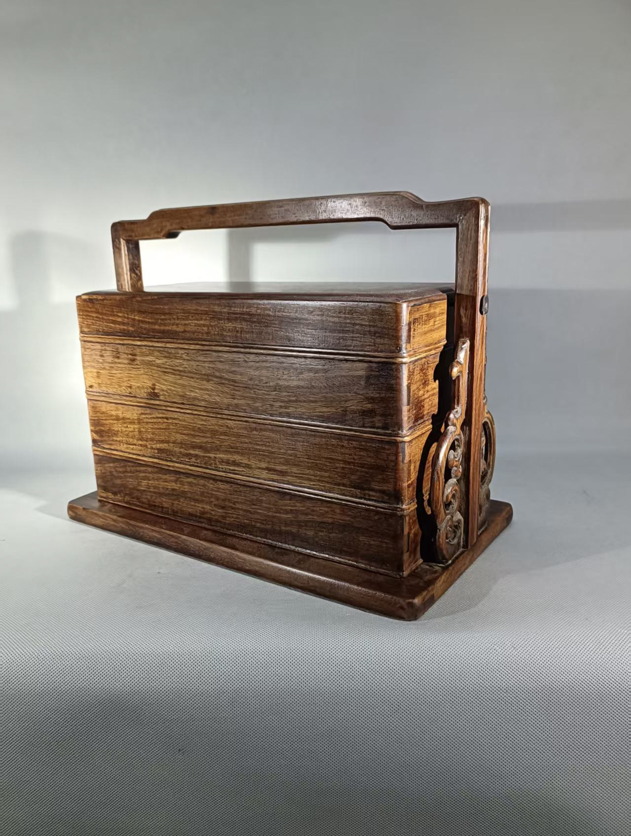 1005 小叶紫檀整料四方倭角笔筒花插摆件