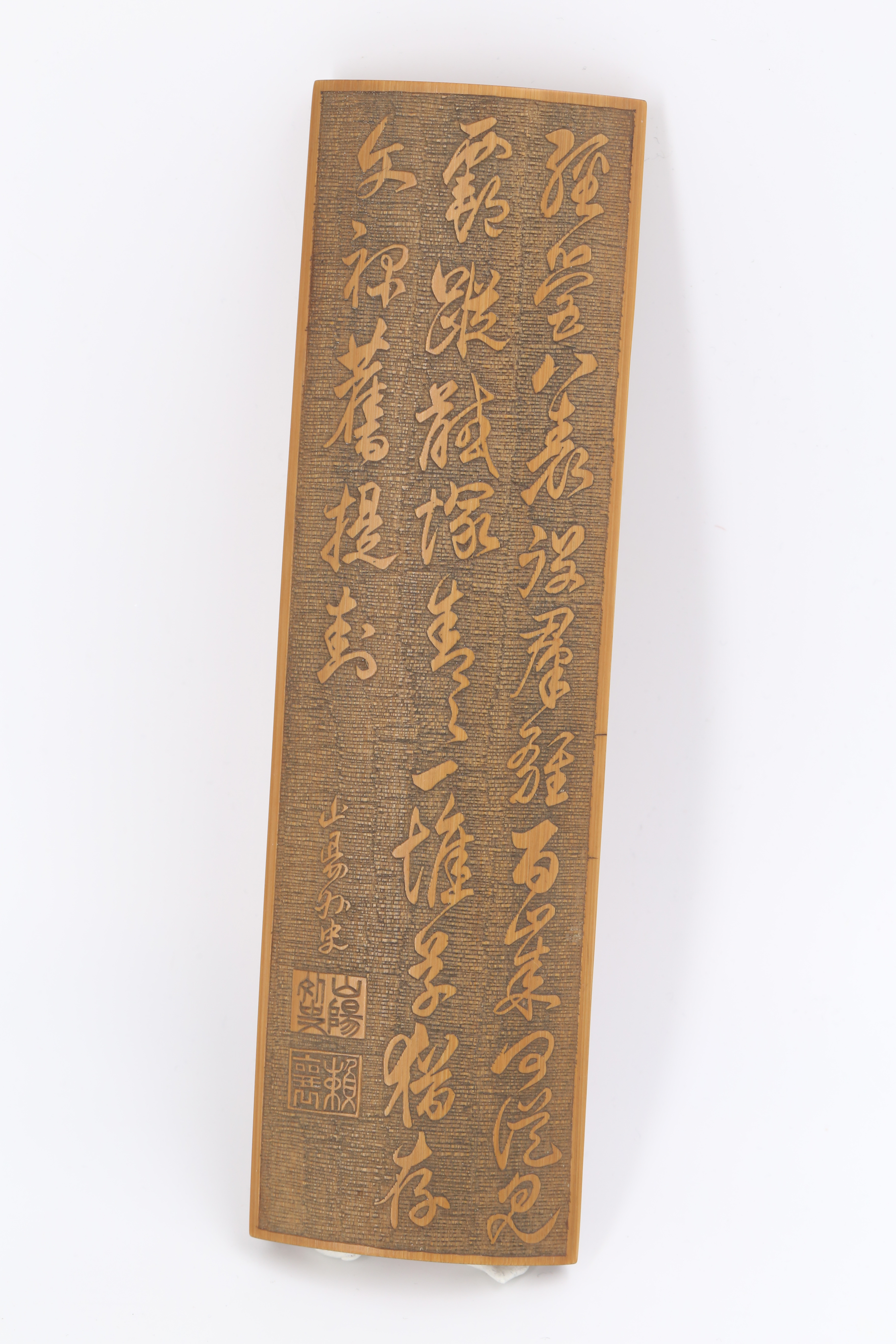 1011 香圃老人款黄花梨刻寒梅诗文笔筒
