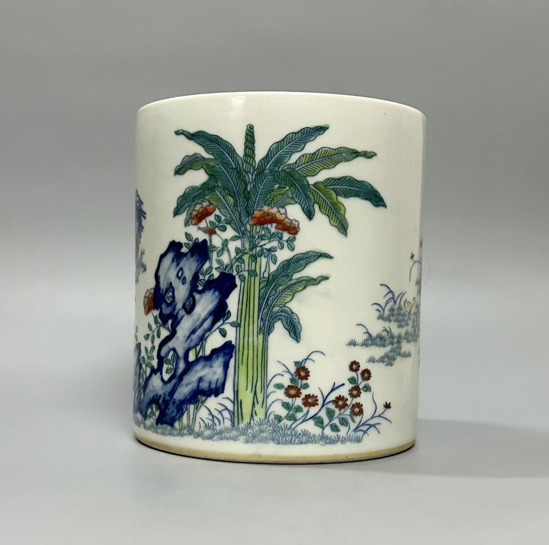 1009 小叶紫檀整挖玉兰花纹笔筒
