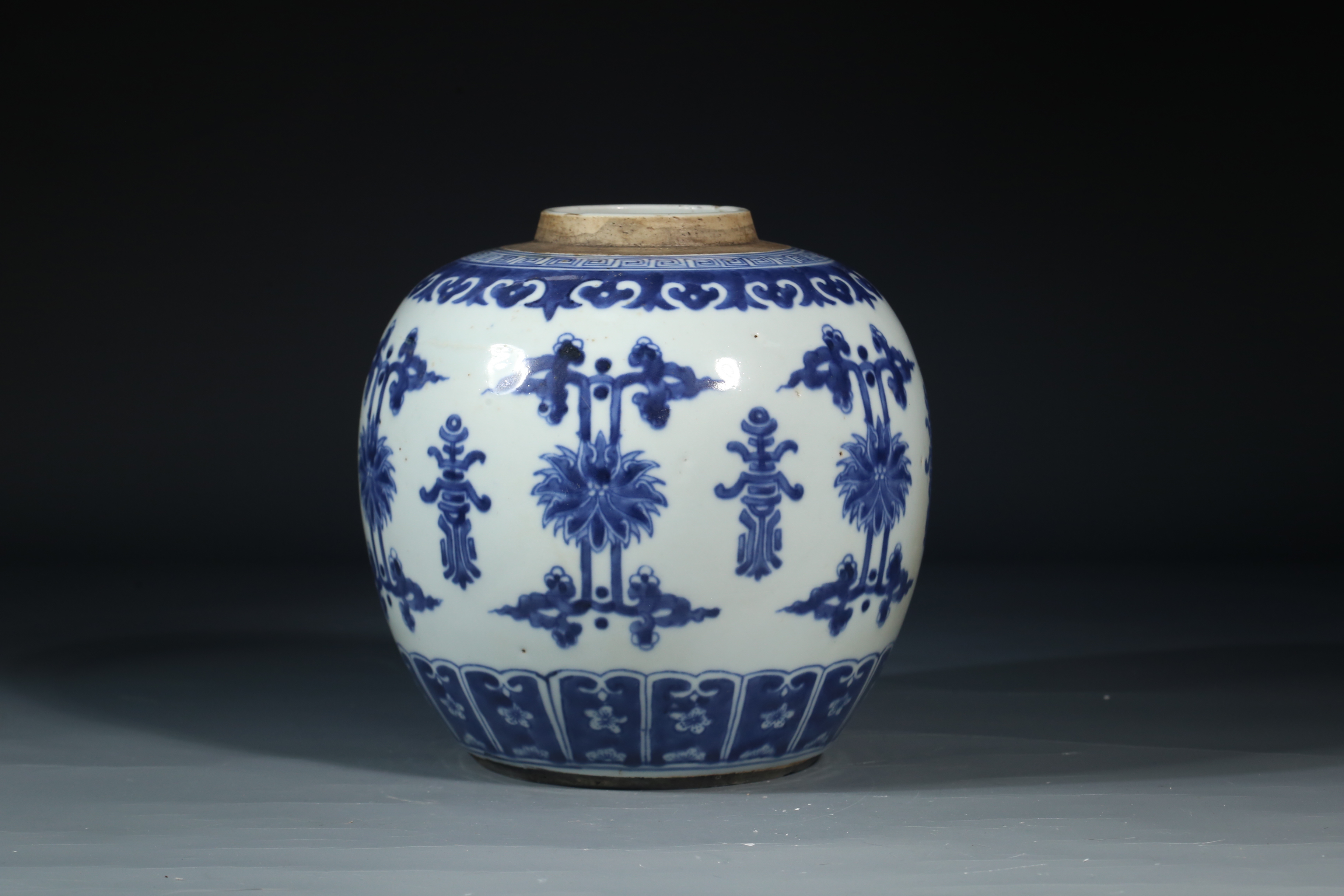 2504 青花花间寿字罐
