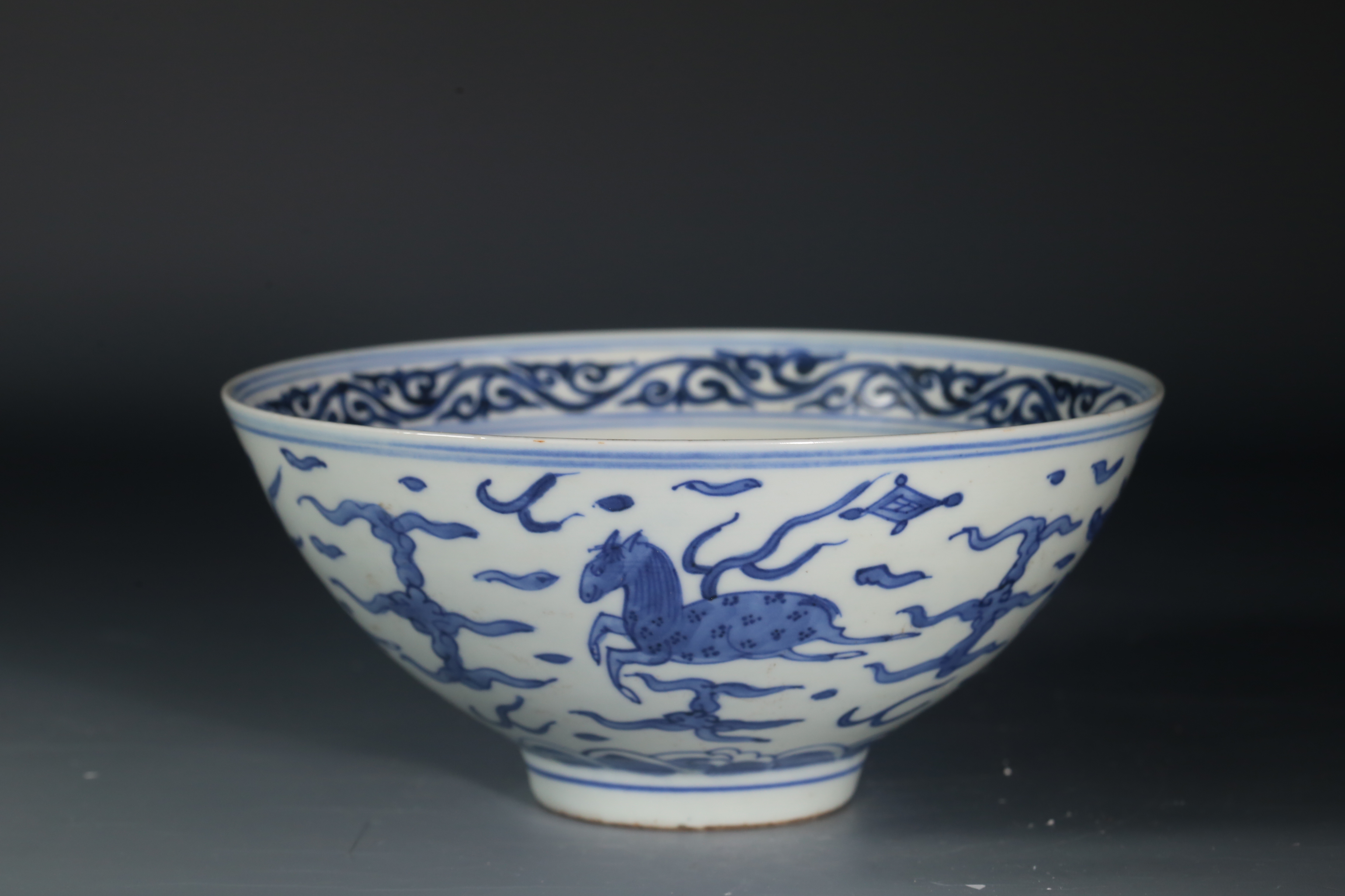 2505 青花海马纹鸡心碗