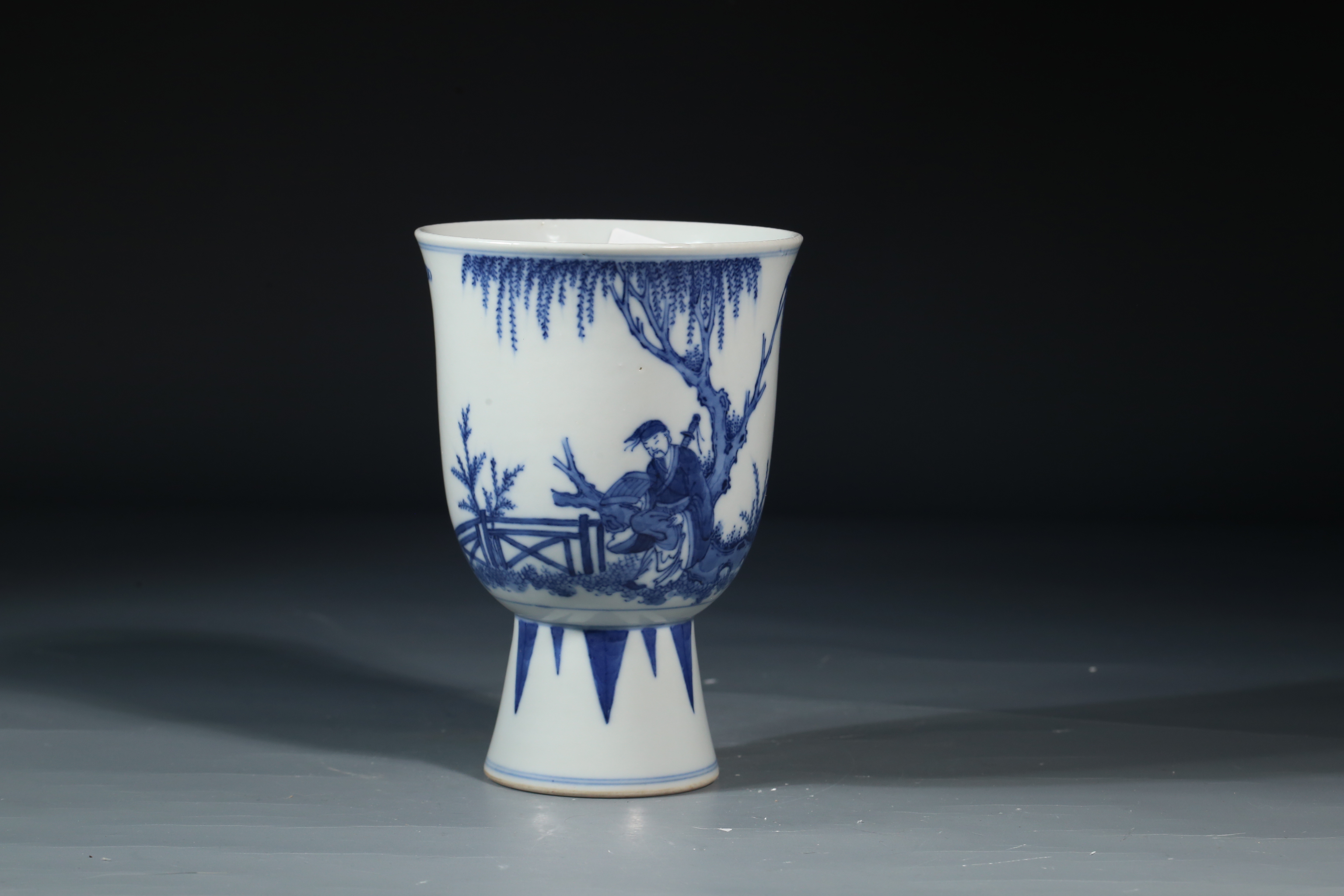 2506 青花神仙人物高足仰钟杯